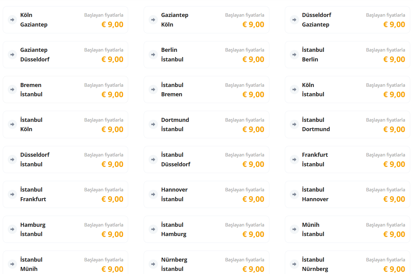 Pegasus, 7-8 Ekim tarihlerinde bazı yurt dışı uçak biletlerini 9 euro + vergilerden başlayan fiyatlarla satacağını duyurdu. Peki, kampanyadan hangi hatlarda faydalanılabilecek? İşte detaylar.. Pegasus yurt dışı uçuşlara özel yeni bir uçak bileti kampanyası başlattı. Pegasus tarafından başlatılan kampanyada biletlerin 9 euro artı vergilerden başlayan fiyatlarla satışa sunulduğu açıklandı. İlgili açıklamada, kampanyanın Türkiye yerel saatine göre 7 Ekim 2025 saat 09.15’ten itibaren 8 Ekim 2025 saat 23.59’a kadar satışı yapılacak biletlerde geçerli olacağı aktarıldı. Kampanyadan yararlanmak isteyenlerin uçuşlarını ise 26 Ekim 2025 ila 28 Mart 2026 aralığında seçmesi gerektiği bildirildi. Kampanya kapsamında 200.000 adet koltuk ayrıldığı paylaşılan açıklamada, kampanyanın geçerli olacağı hatlar şöyle sıralandı: