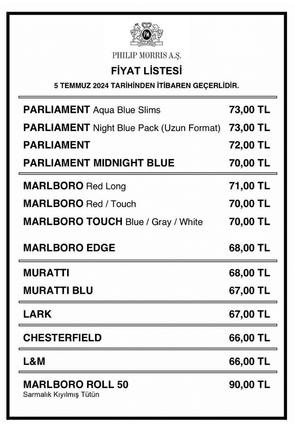 Haziran ayı enflasyon verisinin açıklanmasıyla belli olan ÖTV'deki artış tutarı sonrasında sigara firmaları da fiyatlarını güncellemeye başladı. Buna göre JTI'ın ardından Pihilip Morris de ürünlerine zam yaptığını duyurdu. Peki, zamların ardından en ucuz sigara kaç lira oldu? İşte detaylar.. Alkollü içecekler, sigara ve akaryakıtta uygulanacak Özel Tüketim Vergisi (ÖTV) zammı, Türkiye İstatistik Kurumu’nun (TÜİK) altı aylık enflasyon verilerini açıklamasıyla belli olmuştu. Bu kapsamda akaryakıt, alkollü içecekler ve tütün mamullerinin maktu ÖTV tutarlarına yüzde 19,49 artış yapılacağı hesaplanmıştı. [news_id:738488] ÖTV artışı sonrası, sigara grupları da fiyat listesini güncellemeye başladı. İlk zammı JTI grubu açıklarken, şirketten yapılan açıklamaya göre, JTI grubundaki en ucuz sigara 67 TL’ye yükseldi. En pahalı sigara ise 80 TL oldu. Philip Morris sigara grubuna da zam geldi JTI'ın ardından Philip Morris de ürünlerine zam yaptığını duyurdu. Buna göre en ucuz sigara bugün itibarıyla 63 liradan 66 liraya, en pahalı sigara ise 70 liradan 73 liraya yükseldi. Sigaranın başlıca zararları nelerdir? Dünya Sağlık Örgütü’nün verilerine göre küresel çapta yaklaşık 1,2 milyar kişinin sigara kullandığı tahmin edilirken; sigara içen kişiler, kendilerine zarar verdikleri gibi çevrelerinde bulunan kişilerede zarar vermektedir. Bu duruma ise pasif içicilik denilmektedir. Peki sigaranın başlıca zararları nelerdir? Öncelikle sigaranın en büyük zararını %10-15 kilo eksikliği ve zeka geriliği ile anne karnındaki bebekler görmektedir. Tütün içinde bulunan Karbonmonoksit, Nikotin, Katran gibi zararlı maddeler, akciğer kanseri başta olmak üzere solunum sistemi hastalıklarından olan bronşit ve amfizeme gibi hastalıklara neden olmaktadır. Öte yandan sigarada bulunan Karbonmonoksitin kandaki oksijeni yok etmesiyle damarlarda kolestrol depolanmakta ve bunun neticesinde kalp krizi riski artmaktadır. Sigara içmek ayrıca yemek borusu ile midede ülser ve kanama riskini artırmakta, pankreas kanseri riskini de kuvvetlendirmektedir. Ayrıca, sigara içen erkeklerin içmeyenlere oranla ellerinde ve parmaklarında daha sık sararmalar görülmektedir. [news_id:738338]