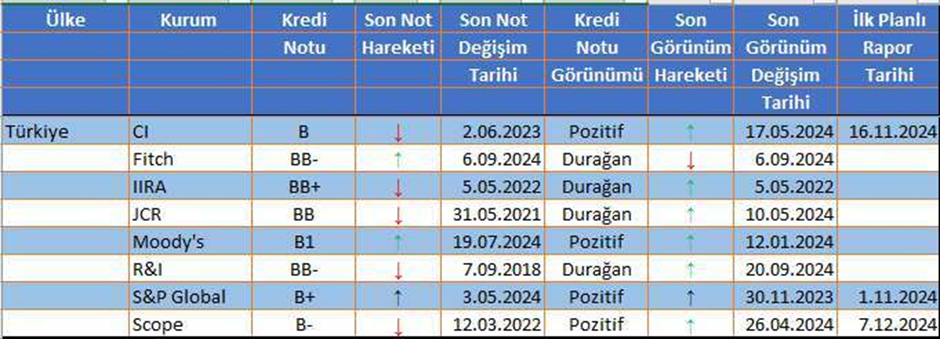 S&P Global’in Türkiye'ye ilişkin not kararı için geri sayım başladı. Peki, ekonomistlerin karara yönelik beklentisi ne yönde oldu? İşte detaylar.. S&P Global'in 2024 takviminde 1 Kasım 2024 Cuma günü Türkiye ile ilgili bir değerlendirmesi bulunuyor. Ancak S&P, takvimde yer alan günlerde bir değerlendirme açıklamayabiliyor. Foreks Haber'in 17 ekonomist ile düzenlediği ankette ise S&P Global'in planlanmış değerlendirmesinde, Türkiye'nin kredi notunun bir kademe artırılarak "B+"dan "BB-"ye çıkarılmasının, "pozitif" olan görünümün ise "durağan" olarak değiştirilmesinin beklendiği görüldü. Buna göre ankete katılım sağlayan 17 ekonomistin 16'sı kredi notunun artacağını, 1'i ise sabit bırakılacağını öngördü. Görünüm için tahmin veren 17 ekonomistten 15'i ise görünümün "durağan"a çekileceğini tahmin ederken, 2'si "pozitif" görünümün korunacağı görüşünü dile getirdi. Ankete Pariterium Danışmanlık, OYAK Yatırım, Ahlatcı Yatıım, İş Portföy, NCM Investment, Sagam Danışmanlık, Anadolu Yatırım, Yatırım Finansman, Tacirler Yatırım, Alnus Yatırım, Gedik Yatırım, Spinn Danışmanlık, Rota Portföy, Deniz Yatırım, Colendi Menkul, Allbatross Yatırım ve Dinamik Yatırım katıldı. Katılımcıların beklentileri ise şöyle sıralandı: Kaynak: Foreks Haber – S&P Türkiye Değerlendirme Anketi Öte yandan ekonomistlerin öngörüsünün gerçekleşmesi halinde Türkiye’nin kredi notu “yüksek spekülatif” düzeyden “spekülatif” düzeye çıkmış olacak. Kaynak: Foreks Haber Son olarak S&P Global, 1 Aralık 2023 tarihinde Türkiye'nin "durağan" olan görünümünü "pozitif"e, 3 Mayıs 2024 tarihinde ise "B" olan kredi notunu "B+"'ya yükseltmişti. Diğer derecelendirme kuruluşlarının Türkiye’ye yönelik son kararları ve ilk planlı rapor tarihleri ise şöyle listelendi: Kaynak: Foreks Haber [news_id:720754]