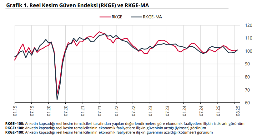 Reel Kesim Güven Endeksi, ağustosta geçen aya göre 0,4 puan artarak 100,6'ya yükseldi. Türkiye Cumhuriyet Merkez Bankası (TCMB), ağustos ayına ilişkin İktisadi Yönelim İstatistikleri ve Reel Kesim Güven Endeksi'ni açıkladı. İktisadi Yönelim Anketi sonuçları, imalat sanayisinde faaliyet gösteren 1832 iş yerinin yanıtlarının ağırlıklandırılıp toplulaştırılmasıyla elde edilerek değerlendirildi. Buna göre, Reel Kesim Güven Endeksi, ağustosta geçen aya göre 0,4 puan artarak 100,6 seviyesine çıktı. Aynı dönemde mevsimsellikten arındırılmış reel kesim güven endeksi de 1,7 puan artarak 100,6 oldu. Kaynak: TCMB Son üç aya yönelik değerlendirmelerde, üretim hacminde artış bildirenler ile ihracat sipariş miktarında azalış bildirenler lehine olan seyrin bir önceki aya göre güçlendiği, iç piyasa sipariş miktarında azalış bildirenler lehine olan seyrin ise bir önceki aya göre zayıfladığı görüldü. Mevcut toplam siparişlerin mevsim normallerinin altında olduğu yönündeki değerlendirmelerin bir önceki aya göre güçlendiği gözlendi. Mevcut mamul mal stokları seviyesinin mevsim normallerinin üzerinde olduğunu bildirenler lehine olan seyrin ise mevsim normallerinin altında olduğunu bildirenler lehine döndüğü gözlendi. Gelecek üç aya yönelik değerlendirmelerde, üretim hacmi, ihracat sipariş miktarı ve iç piyasa sipariş miktarında artış bekleyenler lehine olan seyrin bir önceki aya göre zayıfladığı görülürken, gelecek 12 aydaki sabit sermaye yatırım harcaması ve gelecek 3 aydaki istihdama ilişkin artış yönlü beklentilerin de bir önceki aya göre zayıfladığı gözlendi. ÜFE beklentisi yüzde 35,4'e düştü Ortalama birim maliyetlerde, gelecek 3 ayda artış olacağını bekleyenler ve son 3 ayda artış olduğunu bildirenler lehine olan seyir güçlendi. Gelecek 3 aydaki satış fiyatına ilişkin artış yönlü beklentilerin de güçlendiği gözlenirken, gelecek 12 aylık dönem sonu itibarıyla yıllık ÜFE beklentisi bir önceki aya göre 1,4 puan azalarak yüzde 35,4 seviyesinde gerçekleşti. İçinde bulunduğu sanayi dalındaki genel gidişat konusunda, bir önceki aya kıyasla daha kötümser olduğunu belirtenler lehine olan seyir zayıfladı.