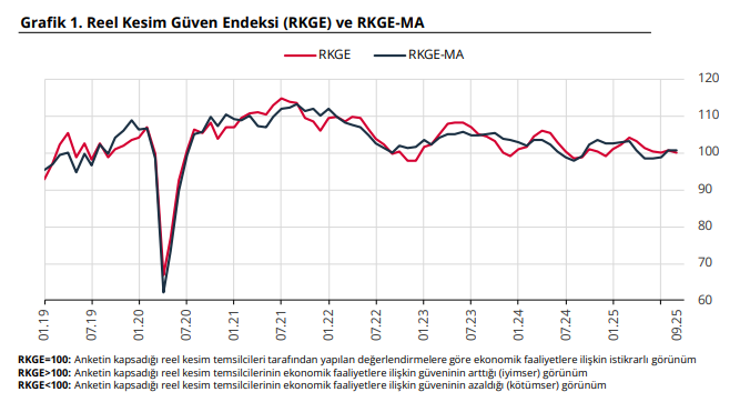 TCMB verilerine göre eylül ayında mevsimsellikten arındırılmış Reel Kesim Güven Endeksi bir önceki aya göre 0,2 puan artarak 100,8 seviyesine çıktı. Türkiye Cumhuriyet Merkez Bankası'nın (TCMB) İktisadi Yönelim İstatistikleri ve Reel Kesim Güven Endeksi verilerine göre eylül ayında mevsimsellikten arındırılmış Reel Kesim Güven Endeksi (RKGE-MA), bir önceki aya göre 0,2 puan artarak 100,8 seviyesinde gerçekleşti. Endeksi oluşturan yayılma endeksleri incelendiğinde, sabit sermaye yatırım harcaması, son üç aydaki toplam sipariş miktarı ve mevcut toplam sipariş miktarına ilişkin değerlendirmeler endeksi artış yönünde etkilerken, mevcut mamul mal stoku, gelecek üç aydaki üretim hacmi, gelecek üç aydaki ihracat sipariş miktarı, genel gidişat ve gelecek üç aydaki toplam istihdama ilişkin değerlendirmeler endeksi azalış yönünde etkiledi. Mevsimsellikten arındırılmamış Reel Kesim Güven Endeksi (RKGE) bir önceki aya göre 0,4 puan azalarak 100,2 seviyesinde gerçekleşti. Son üç aya yönelik değerlendirmelerde, üretim hacminde artış bildirenler ile ihracat sipariş miktarında azalış bildirenler lehine olan seyrin bir önceki aya göre güçlendiği, iç piyasa sipariş miktarında azalış bildirenler lehine olan seyrin ise bir önceki aya göre bir miktar zayıfladığı görüldü. Mevcut toplam siparişlerin mevsim normallerinin altında olduğu yönündeki değerlendirmelerin bir önceki aya göre zayıfladığı görüldü. Mevcut mamul mal stokları seviyesinin mevsim normallerinin altında olduğunu bildirenler lehine olan seyrin ise mevsim normallerinin üstünde olduğunu bildirenler lehine döndüğü gözlendi. Gelecek üç aya yönelik değerlendirmelerde, üretim hacmi, ihracat sipariş miktarı ve iç piyasa sipariş miktarında artış bekleyenler lehine olan seyrin bir önceki aya göre zayıfladığı görüldü. Gelecek üç aydaki istihdama ilişkin artış yönlü beklentilerin azalış bekleyenler lehine döndüğü, gelecek on iki aydaki sabit sermaye yatırım harcamasına ilişkin artış yönlü beklentilerin ise güçlendiği gözlendi. Ortalama birim maliyetlerde, gelecek üç ayda artış olacağını bekleyenler ve son üç ayda artış olduğunu bildirenler lehine olan seyrin zayıfladığı görüldü. Gelecek üç aydaki satış fiyatına ilişkin artış yönlü beklentilerin de zayıfladığı gözlendi. Gelecek on iki aylık dönem sonu itibarıyla yıllık ÜFE beklentisi bir önceki aya göre 0,9 puan azalarak yüzde 34,5 seviyesinde gerçekleşti.