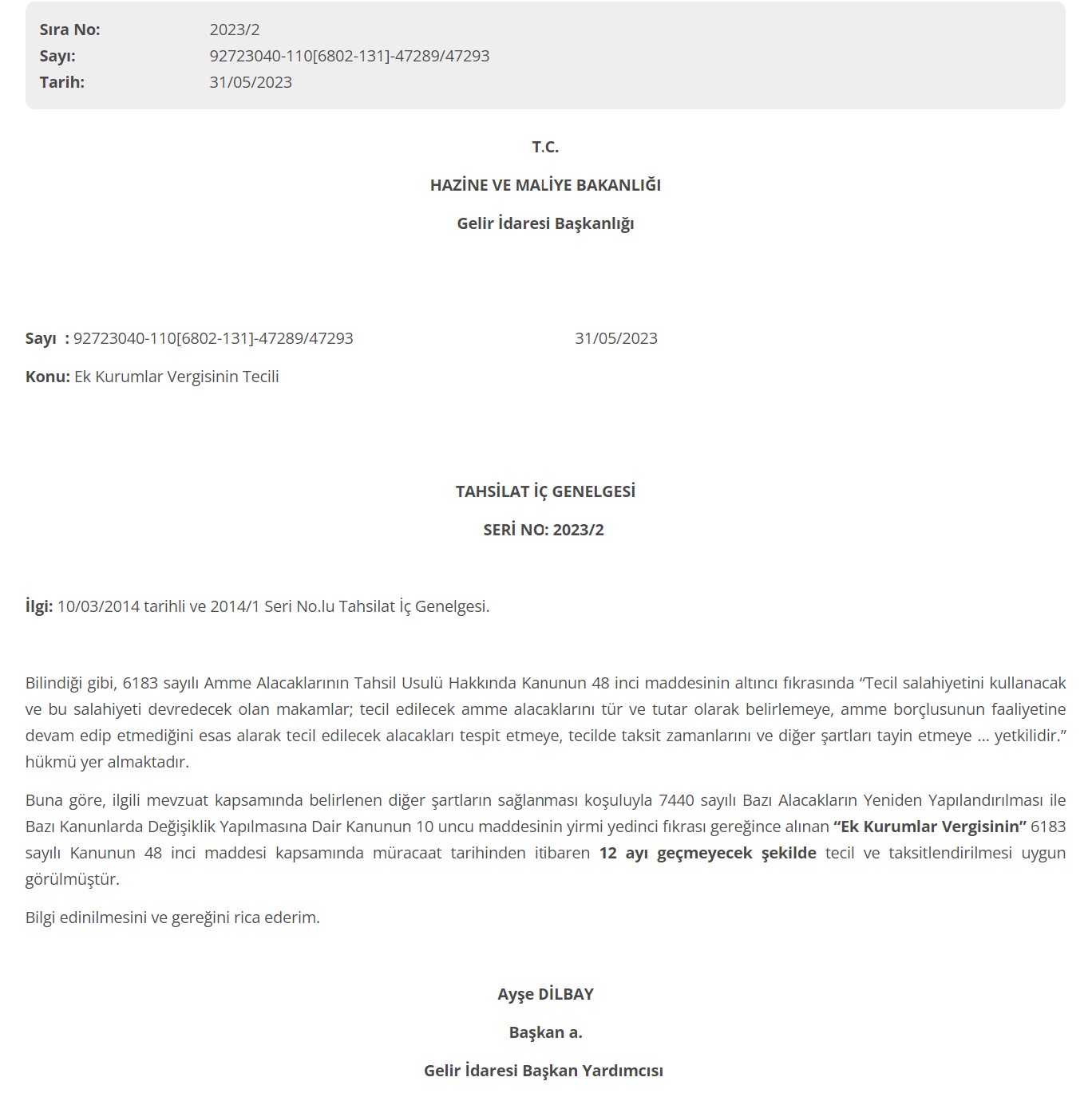 Maliye Bakanlığı yayımladığı tahsilat iç genelgesi ile ek verginin taksitlendirilmesine imkan sağladı. Maliye Bakanlığı'nın yeni genelgesiyle kurumların ek vergi ödemelerinde esneklik sağlandı. Buna göre ek verginin ilki kurumlar vergisi beyannamesinin verileceği nisan ayında, ikincisi ise ağustos ayında olmak üzere 2 taksitte ödenmesi gerekirken, yeni genelge sonrasında ek verginin taksitlendirilebileceği bildirildi. Ek vergi tutarları şirketlerin sermayelerini aşan miktarlara ulaşırken, şirketler ise bu tutarları ödemekte zorlanmaya başlamıştı. Bu nedenle de bazı şirketler dava açarak ödeme yükümlülüklerini erteleme eğilimine girmişti. Maliye ise yayımladığı yeni tahsilat iç genelgesi ile, ek verginin 12 aya kadar taksitlendirilmesine imkan sağladı. Kaynak: GİB Maliye'nin taksitlendirme kolaylığının ise ödeme zorluğu yaşayan şirketleri rahatlatması bekleniyor. Ek vergi uygulamasına yönelik daha ayrıntılı bilgi sahibi olabilmek için ödeme şartlarının değiştiğini göz önünde bulundurarak, “Ek kurumlar vergisinin uygulama esasları belirlendi” başlıklı haberimizi okuyabilirsiniz.