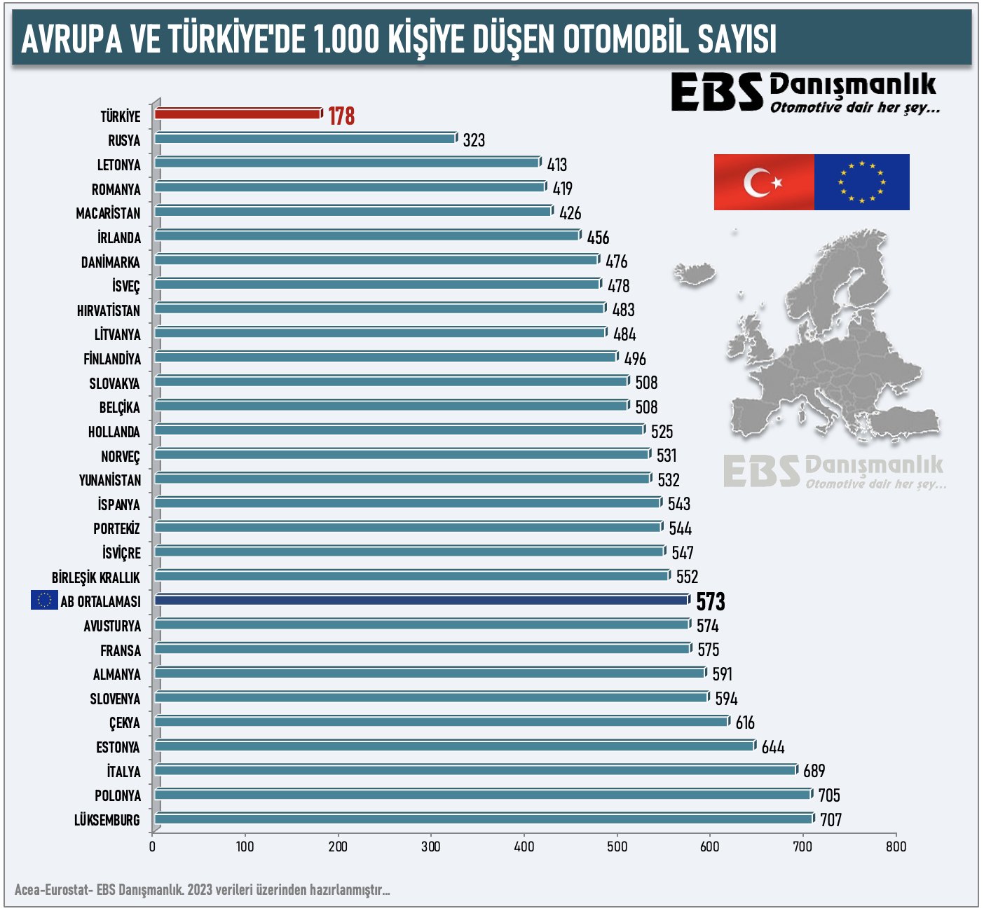 Türkiye otomobil ve hafif ticari araç pazarında bu yılın şubat ayında en fazla satışı gerçekleştirilen markalar Fiat, Renault ve Citroen oldu. Otomotiv Distribütörleri ve Mobilite Derneği (ODMD) verilerine göre, geçen ay otomobil ve hafif ticari araç satışları, 2023'ün aynı dönemine göre yüzde 30,6 artarak 105 bin 990 adet oldu. Şubatta otomobil satışları yüzde 39,67 artışla 82 bin 277 olurken, hafif ticari araç satışları yüzde 6,6 yükselişle 23 bin 713 olarak kayıtlara geçti. Geçen ay binek ve hafif ticari olmak üzere toplam satışlarda 13 bin 560 ile Fiat ilk sırayı aldı. Fiat'ı, 12 bin 903 satışla Renault, 7 bin 730 satışla da Citroen takip etti. Satış sıralamasında Citroen'in ilk 3'e girmesi ise dikkati çekti. Ford, 7 bin 145 satışla dördüncü, Volkswagen 6 bin 730 satışla beşinci sırada yer aldı. Otomobil satışları ele alındığında şubat ayında en fazla satış gerçekleştiren marka 11 bin 468 ile Renault oldu. Onu 7 bin 468 satışla Fiat, 5 bin 664 satışla Citroen izledi. Toyota, 5 bin 565 otomobil satışıyla dördüncü sırada konumlanırken, Chery, 5 bin 6 satışla beşinci sırada yer aldı. Lüks otomobil satışları Toplam 53 markanın yer aldığı ODMD listesinde geçen ay Smart ve Seres hariç tüm markaların satış yaptığı görüldü. Togg'un teslimatları şubat ayı için 1201 olarak gerçekleşirken, Tesla'nın satışları 75'te kaldı. Lüks otomobil grubunda şubatta 209 DS, 93 Porsche, 33 Lexus, 23 Maserati, 13 Jaguar, 3 Lamborghini, ikişer adet Aston Martin ile Bentley ve 1 Ferrari satışı gerçekleştirildi. Hafif ticari araç segmentine bakıldığında, Fiat, geçen ay 6 bin 92 satışla listenin ilk sırasında yer alırken, onu 5 bin 194 satışla Ford, 2 bin 542 satışla Volkswagen izledi. Citroen, 2 bin 66 satışla dördüncü, Peugeot 1809 satışla beşinci oldu. [news_id:726361] Türkiye'de 1000 kişiye 178 otomobil düşüyor EBS Danışmanlık Kurucusu Erol Şahin'in paylaştığına göre ise otomobilden traktöre, motosikletten kamyona kadar 28 milyon 740 bin 492 adet motorlu kara taşıtı bulunan ülkemizde her 1.000 kişiye 337 taşıt düşerken 1.000 kişiye düşen otomobil sayısı 178 adet. Kaynak: EBS Danışmanlık