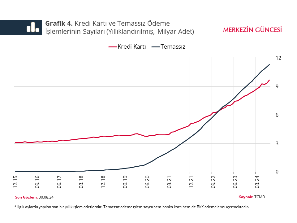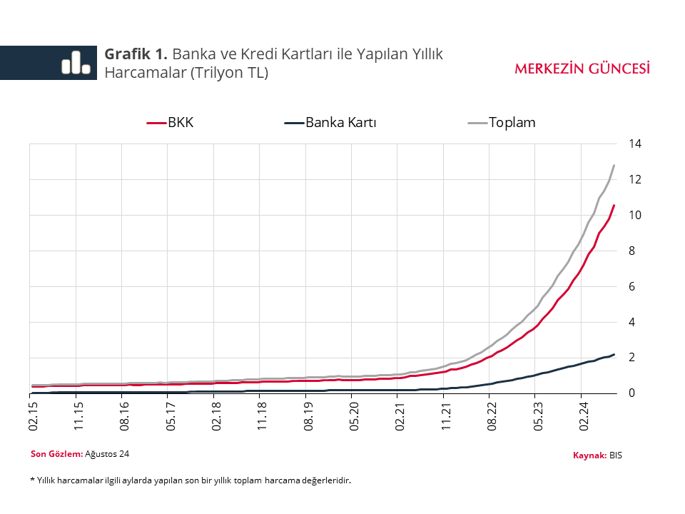 TCMB blog sayfası Merkezin Güncesi'nde yer alan "Kartlı Harcama Tercihlerinde Son Dönem Eğilimler" başlıklı analizde, dijital kanalların yaygınlaşmasının ve yüksek enflasyonla birlikte nakit taşıma maliyetinin artmasının banka ve bireysel kredi kartlarının kullanımını artırdığı ifade edildi. Merkezin Güncesi'nde, "Kartlı Harcama Tercihlerinde Son Dönem Eğilimler" başlıklı bir analize yer verildi. Analizde, "Dijital kanalların yaygınlaşması ve yüksek enflasyonla birlikte nakit taşıma maliyetinin artması banka ve bireysel kredi kartlarının (BKK) kullanımını artırıyor. Kartların nakit avans ve vadeli ödeme imkanları ile tüketicilere borçlanma imkanı sunması da bu gelişime katkı sunuyor. Son yıllarda görülen yüksek enflasyonun da etkisi ile kartlı harcama bakiyesi nominal ve reel bazda belirgin bir şekilde yükseliyor. Bu yazıda, kartlı harcama bakiyesinde gözlenen reel artışı inceliyoruz ve ödeme aracı tercihlerinde bireylerin nakit yerine kart kullanımına yönelmesinin bu artışta önemli bir belirleyici olduğunu gösteriyoruz." ifadeleri kullanıldı. Kaynak: TCMB - Merkezin Güncesi Türkiye’de yaklaşık 28 milyon aktif kredi kartı kullanıcısı, 125 milyon kredi kartı, 191 milyon banka kartı bulunurken kartlı harcamaların toplam hacminin 12,8 trilyon Türk lirasına ulaştığı belirtilen analizde, şunlar kaydedildi: "2021 yıl sonundan 2023 yılının üçüncü çeyreğine kadar faizlerin enflasyonun görece altında kalması bakiye büyümesindeki hızlı artışta önemli rol oynadı. Ancak kredi kartı ile yapılan harcamaların artışında kartla borçlanma maliyetinin dışındaki faktörler de etkili. Kart ile yapılan harcamaların artmasında kartlı ödeme yöntemlerinin kullanım kolaylığı sunması, salgın dönemiyle birlikte temassız ödeme tercihinin hızlı bir şekilde artması ve nakit taşımanın azalması da önemli bir yer tutuyor. Nitekim, aynı dönemde herhangi bir borçlanma imkanı sunmayan banka kartları ile yapılan harcamalarda kredi kartlarına göre daha yüksek oranda bir reel artış yaşanması bu görüşü destekliyor. 2015 yılından günümüze kredi kartıyla yapılan harcamalar reel bazda 2 kat artarken banka kartlarıyla yapılan harcamalar yaklaşık 3 kat artış gösteriyor. Bu artışın tamamına yakınının (kredi kartlarında yüzde 100’ü, banka kartlarında yüzde 80’i) 2021 yılı sonrasında gerçekleştiği görülüyor." Kredi kartı ile yapılan işlem adetlerinin Kovid-19 salgını sonrası dönemde kartlı ödemede finansal teknolojilerin gelişmesinin de etkisiyle önemli oranda arttığına işaret edilen analizde, salgın öncesi dönemde BKK işlem adetlerinin yıllık yaklaşık 4 milyar civarında iken, 2024 yılı itibarıyla bu miktarın 10 milyara yaklaştığı aktarıldı. Analizde, ayrıca salgınla beraber ivmelenen ve ödeme sistemlerindeki teknolojik altyapının gelişimiyle desteklenen temassız ödeme tercihlerinin (banka kartı dahil) yaygınlaşmaya devam ettiği ve 2015 yılında ayda yalnızca 2 milyon temassız ödeme işlemi yapılırken mevcut dönemde her ay 1 milyar adetin üzerinde temassız ödeme işlemi gerçekleştiği bildirildi. Kaynak: TCMB - Merkezin Güncesi Ödeme tercihlerinin nakit kullanımından kart kullanımına kaymasının hane halkı harcama türlerine de yansıdığı ifade edilen analizde, "Gayrisafi yurt içi hasılanın (GSYİH) en büyük kalemi olan hane halkı tüketim harcamalarında BKK ile taksitsiz yolla veya banka kartı ile yaptığı harcamaların payı son yıllarda artıyor. Örneğin, banka kartı ile yapılan harcamaların toplam hane halkı tüketimindeki payı yüzde 6,8’den yüzde 10’un üzerine, taksitsiz kredi kartı payı ise yüzde 21’den yüzde 34’e ulaştı." denildi. Analizde, BKK harcamalarının yaklaşık dörtte üçünün taksitsiz yolla yapılıyor olmasının ve nakit avans kullanım hacminin toplam kartlı harcamalarda düşük bir paya sahip olmasının da kredi kartlarının borçlanma amacıyla kullanılma eğiliminin düşük olduğu görüşünü desteklediği aktarılarak, dolaşımdaki paranın enflasyondan düşük büyüme oranının, daha fazla kişinin günlük işlemlerinde nakit yerine kartları tercih ediyor olduğu görüşünü desteklediği belirtildi. Önceki yıllarda tarihi yüksek seviyelere çıkan kartlı harcama bakiyelerinin, tüketici ödeme alışkanlıklarında enflasyonist baskılar ve nakit yerine kart kullanımının getirdiği kolaylık nedeniyle ortaya çıkan önemli bir değişikliği yansıttığı kaydedilen analizde, "Politika yapıcıların ve analistlerin ekonomideki talep koşullarını ve hane halkı borcunu değerlendirirken devam etmesi muhtemel bu davranış değişikliklerini dikkate alması gerekiyor. Çoğunlukla borçlanma ihtiyaçlarından bağımsız olan kart kullanımındaki artış, borçlu talebindeki artıştan ziyade harcama davranışındaki değişimi yansıttığı için, yalnızca kredi kartı kullanımı gibi geleneksel göstergelere dayalı çıkarımlar yanlış yorumlara neden olabiliyor." değerlendirmesine yer verildi.