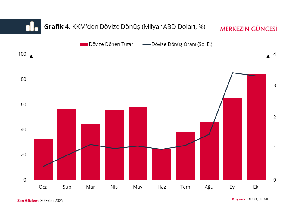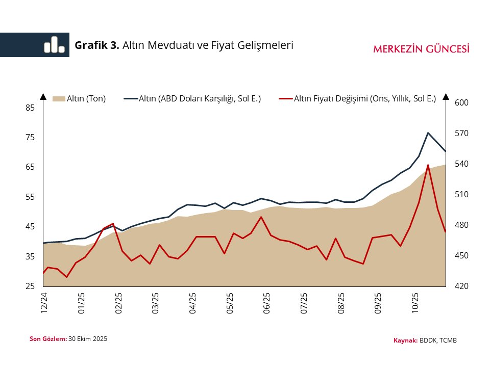 Türkiye Cumhuriyet Merkez Bankası (TCMB) ekonomistleri, yeni bir blog yazısında yabancı para mevduatta son dönem gelişmeleri mercek atına alındı. TCMB blog sayfası Merkezin Güncesi'nde yayımlanan "Yabancı Para Mevduatta Son Dönem Gelişmeler" analizinde, son dönemde YP mevduatta ağırlıklı olarak parite ve fiyat etkisi kaynaklı nominal artışlar gerçekleştiği belirtildi. TCMB'de Uzman Yardımcısı olarak görev yapan Oğuzhan Evli, TCMB’de Uzman olarak görev yapan Ayşe Karasoy ve TCMB’de Kıdemli Uzman Didem Güneş tarafından kaleme alınan blog yazısında, altın fiyatlarındaki hızlı artışa rağmen TL mevduat payının tarihsel ortalamalar seviyesinde kalmaya devam ettiği ifade edildi. TCMB'nin blog yazısında şu ifadelere yer verildi: "Yabancı para (YP) mevduat, para politikasının etkinliği ve finansal istikrar açısından yakından izlenen temel göstergeler arasında yer alıyor. Kur Korumalı Mevduat (KKM) hesaplarının sonlandırılması, altın fiyat hareketleri ve euro/ABD doları paritesindeki yükseliş, YP mevduat artışını etkileyen unsurlardan oldu. KKM ve YP mevduat toplamındaki seyir Ağustos 2023 itibarıyla KKM hesapları en yüksek seviyesine ulaşırken, KKM ve YP mevduat toplamı 340 milyar ABD dolarını aşmıştı. Sonraki dönemde sıkı para politikası duruşu ve destekleyici makroihtiyati politika seti ile mudilerin TL mevduat tercihi güçlü seyretti. KKM ve YP mevduat toplamı 2024 yılı sonunda 221 milyar ABD dolarına geriledikten sonra, son dönemde yeniden yükselerek 242 milyar ABD dolarına ulaştı. YP mevduat 2024 yıl sonunda 188 milyar ABD doları seviyesinden son dönemde 238 milyar ABD dolarına yükselerek 50 milyar ABD doları arttı. Bu artışın 31 milyar ABD doları altın mevduatından, 15 milyar ABD doları euro cinsi mevduattan, kalan kısım ise ABD doları ve diğer döviz mevduatından kaynaklandı. Parite ve altın fiyatı etkisi 2025 yılında YP mevduatta kaydedilen nominal artışta parite ve altın fiyatındaki yükseliş önemli rol oynadı. Altın ons fiyatı 2024 yıl sonunda 2.600 ABD doları civarındayken, yaklaşık yüzde 73’lük bir artışla 17 Ekim’de 4.500’lerde zirve yaptıktan sonra 30 Ekim’de 4.000 ABD dolarına yakınsadı. Aynı dönemde euro/ABD doları paritesi ise 1,04’ten 1,16’ya yükseldi. Buna göre; 2025 yılında YP mevduattaki 50 milyar ABD doları tutarındaki nominal artış parite ve fiyat etkilerinden arındırıldığında, 6,5 milyar ABD doları gerçek kişiden olmak üzere toplamda 19 milyar ABD doları ile sınırlı kaldı. YP mevduatı altın fiyatının doğrudan etkisinin dışında artıran bir diğer unsur da küresel altın fiyatındaki yükselişin mudilerin yatırım tercihlerinde etkili olmasıydı. Özellikle eylül ve ekim aylarında altın getirilerinin diğer finansal ürünlerin getirisinin belirgin şekilde üzerinde olması mudilerin altın talebini artırdı. Nitekim altın mevduatında fiyat etkisinin yanı sıra ton bazında da artış görüyoruz. Altın mevduatı 2024 yıl sonundan bu yana yaklaşık 76 ton ve sabit fiyatla bakıldığında 6,5 milyar ABD doları karşılığı artarken, bu değişimin yarıdan fazlası son iki ayda gerçekleşti. KKM'den dövize dönüş eğilimi YP mevduat artışını etkileyen unsurlar arasında KKM hesaplarından dövize dönüş de yer aldı. KKM bakiyesi aynı dönemde 29 milyar ABD doları azalarak 4 milyar ABD dolarının altına geriledi. Bu hesaplardan dövize dönüş oranı mart ayından ağustos ayına kadar yüzde 25 civarındaydı. Ağustos ayında ise, gerçek kişiler için de yenileme ve yeni hesap açma işlemlerinin sonlandırılmasıyla dövize dönüş oranı eylül ve ekim aylarında yüzde 80’in üzerine çıktı. Dövize dönüş oranının artmasında, bu hesaplarda kalan mudilerin döviz eğilimlerinin daha yüksek olması etkili oldu. KKM hesapları sonlandırılırken dövize dönüş oranının önceki dönemlere benzer şekilde sınırlı kalması için TL’ye geçiş hedefleri gibi adımlar atılması mümkündü. Ancak, finansal istikrar ve piyasa işleyişi gözetilerek makroihtiyati çerçevede sadeleşmeye gidildi ve vadesi gelen KKM hesaplarıyla ilgili tüm hedefler kaldırıldı. Bu bağlamda, KKM hesaplarından dövize dönüş ağustos-ekim döneminde 7,9 milyar ABD doları oldu. Kasım ayından sonra KKM hesapları büyük oranda kapanmış olacak. Parite ve fiyat etkisi dışında YP mevduatta sınırlı artış Sonuç olarak, son dönemde YP mevduatta ağırlıklı olarak parite ve fiyat etkisi kaynaklı nominal artışlar gerçekleşti. Parite ve fiyat etkisinden arındırılmış YP mevduat ise, KKM hesaplarının sonlandırılması ve yatırım amaçlı altın alımları kaynaklı olarak sınırlı bir artış sergiledi. Altın fiyatlarındaki hızlı artışa rağmen TL mevduat payı tarihsel ortalamaları seviyesinde kalmaya devam ediyor. Bu gelişmeler, hanehalkı ve şirketler kesiminde TL varlık tercihinin büyük ölçüde korunduğuna işaret ediyor."