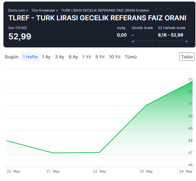 Merkez Bankası’nın geçen hafta likidite fazlasına yönelik attığı adımlar sonrasında gecelik faizler ile mevduat faizlerinde sert bir yükseliş yaşandı. Merkez Bankası'nın geçen haftaki Para Politikası Kurulu toplantısı öncesinde piyasa ve TL mevduat faizleri yüzde 50 olan politika faizinin altına inmişti. Buna göre BİST gecelik repo faizi yüzde 47,22'ye inerken, standart TL mevduat faizi ise özellikle düşük miktarlı tasarruflarda yüzde 41 seviyesine kadar gerilemişti. Mayıs ortasından bu yana yüzde 40-48 arasında bir seyir izleyen mevduat faizi bir türlü ise politika faizi olan yüzde 50'ye çıkamamıştı. [news_id:734167] Perşembe günü PPK sonrasında ise Merkez Bankası, TL ve KKM mevduatlarında zorunlu karşılık oranlarını yükseltmesinin yanında KKM’de çözülmeyi hızlandıracak adımlar attı. Öte yandan TCMB, döviz kredilerine de aylık yüzde 2 büyüme sınırı getirdi. [news_id:734299] Faizlerde sert yükseliş Merkez Bankası’nın mayıs Para Politikası Kurulu toplantısında politika faizini yüzde 50’de sabit bırakmasına rağmen attığı makroihtiyati ve likidite adımları sayesinde yüzde 40’lı seviyelere inen standart TL mevduat faizi bir anda 7-8 puan, TLREF faizi ise 5 puan yükseldi. Mevduat faizlerinde son durum Doç. Dr. Levent Yılmaz ise geçtiğimiz hafta yaptığı değerlendirmede, atılan adımların tam etkisinin bu haftadan itibaren daha net görülmeye başlanacağını belirterek, "Önümüzdeki haftadan itibaren mevduat faizlerinde yukarı yönlü hareketleri görmeye başlarız. Küçük mevduat sahiplerinin faizleri yüzde 50'nin üzerine doğru gelecektir." değerlendirmesinde bulunmuştu. [news_id:734412] Ekonomi gazetesinden Şebnem Turhan'ın aktardığına göre özel yabancı mevduat bankalarının PPK öncesi 50 bin liraya kadar yüzde 41 olan 32 gün vadeli mevduat faizi 24 Mayıs itibarıyla 8 puan birden yükselerek yüzde 49'a çıktı. 46 gün vadeli mevduatta ise yine 50 bin liraya kadar olan mevduat faizi yüzde 41 iken yüzde 49'a ulaştı. En çok tercih edilen 3 aya kadar vadeli TL mevduat faizi ise 50 bin lira altı için yüzde 50'ye çıktı. Böylelikle PPK öncesine göre 7 puan artış gerçekleşti. Yüksek tasarruf miktarlarında ise 32 gün ve 46 gün vadede yüzde 45 olan TL mevduat faizi yüzde 53'e yükselerek 8 puan artış kaydetti. 3 aya kadar vadeli mevduatta yüksek tasarruf miktarlarına verilen faiz oranı ise yüzde 46'dan yüzde 54'e yükseldi. [news_id:734096]