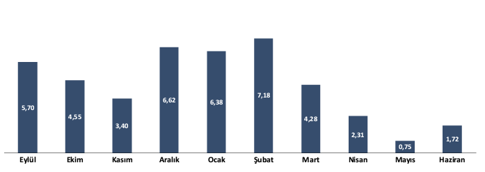 TEPAV, Gıda Fiyat Endeksi Haziran 2024 verileri açıklandı. TEPAV'ın açıkladığı verilere göre 1-30 Haziran 2024 döneminde aylık gıda enflasyonu yüzde 1,72 seviyesinde ölçüldü. Türkiye Ekonomi Politikaları Araştırma Vakfı (TEPAV), haziran ayına ilişkin Gıda Fiyat Endeksi (TEGE) sonuçlarını açıkladı. TEPAV'ın açıkladığı Gıda Fiyat Endeksi (TEGE) verilerine göre, 1-30 Haziran 2024 döneminde aylık gıda enflasyonu yüzde 1,72 oldu. Kaynak: TEPAV TEPAV’dan yapılan açıklamada ise şunlar kaydedildi: "Türkiye Ekonomi Politikaları Araştırma Vakfı (TEPAV) tarafından açıklanan Gıda Fiyat Endeksi (TEGE) verilerine göre, 1-30 Haziran 2024 döneminde aylık gıda enflasyon oranı yüzde 1,72 olarak hesaplandı. Kurban Bayramı nedeniyle haziran ayında fiyatı en çok düşen ürünlerde baklava ve kağıtlı şeker bulunurken patates ve bazı yumru bitkiler haricindeki sebzeler ile tavuk eti ve yumurtada da fiyat düşüşleri gerçekleşti. Taze meyveler, çarliston biber, salatalık gibi sebzeler ile kabuklu yemişlerde ise bir önceki aya göre yüksek fiyat artışları gözlendi. TEGE ile on aylık birikimli gıda enflasyonunu yüzde 52,02 hesaplanırken ÜGE-Gıda (İTO) ile yüzde 51,24, Türk-İş mutfak enflasyonu ile yüzde 55,57 ölçüldü. 1-30 Haziran 2024 dönemi için 1 Temmuz 2024 tarihi itibarıyla diğer kuruluşlar tarafından hesaplanan gıda enflasyonu ÜGE-Gıda (İTO) ile yüzde 2,66, Türk-İş ile yüzde 0,05 düzeyinde gerçekleşti. TÜİK, CEFIS ve ENAG tarafından ise henüz veri açıklanmadı." [news_id:738252]