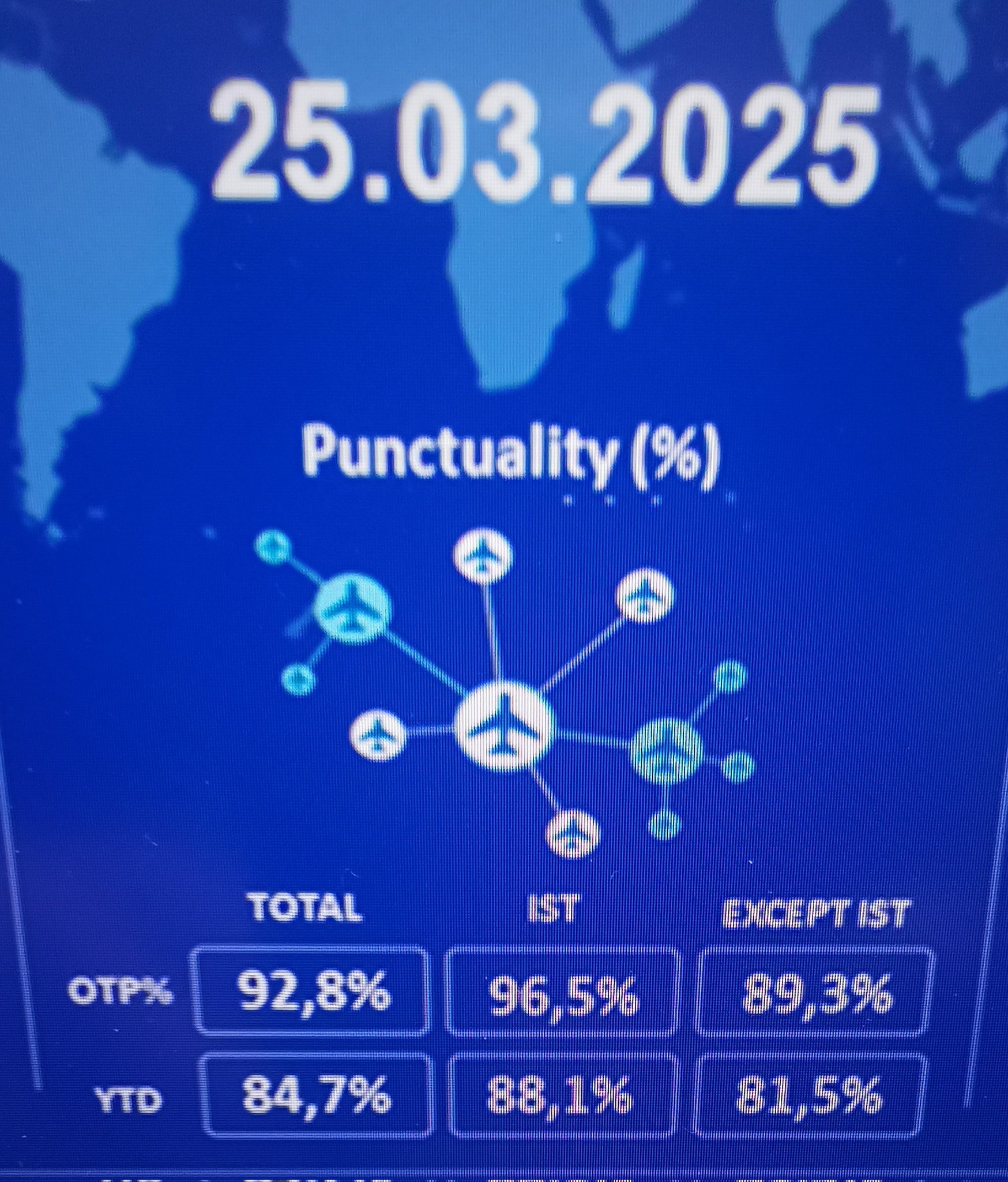 THY Genel Müdürü Bilal Ekşi, şirketin zamanında kalkış oranının yüzde 84,7’ye çıktığını duyurdu. Türk Hava Yolları (THY), 2025 yılının ilk çeyreklik dönemine ilişkin zamanında kalkış oranını açıkladı. Konuya ilişkin sosyal medya hesabından paylaşım yapan THY Genel Müdürü Bilal Ekşi, şunları aktardı: "Yıl başından itibaren zamanında kalkış puanımız %84,7'ye ulaştı. İstanbul kalkışli seferlerimizde bu oran %88,1. Maşallah diyoruz. Ekiplerimize bu başarı için tebrik ve teşekkür ediyorum." Kaynak: Bilal Ekşi - X