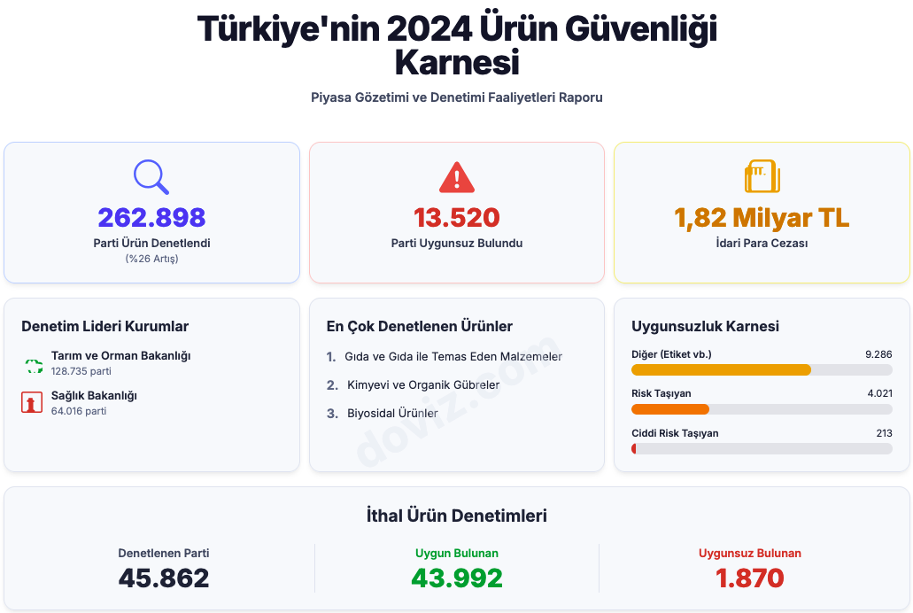 Geçen yıl Türkiye genelinde piyasaya arz edilen 262 bin 898 ürün partisi denetime tabi tutuldu. Uygunsuzluk tespit edilen 13 bin 520 ürün partisi için toplamda 1 milyar 825 milyon 622 bin 152 lira ceza uygulandı. Ticaret Bakanlığı’nın koordinasyonunda yürütülen piyasa gözetimi ve denetimi faaliyetleri kapsamında 2024 yılına ilişkin veriler kamuoyuyla paylaşıldı. Türkiye’de ürün güvenliğinin sağlanması amacıyla uygulanan mevzuat çerçevesinde gerçekleştirilen denetimlerin kapsamı ve sıklığı, geçen yıla kıyasla gözle görülür biçimde artış gösterdi. 9 farklı kamu kurumu ve kuruluşunun katılımıyla yürütülen bu denetimlerde toplam 262 bin 898 ürün partisi incelendi. Bu sayı, 2023 yılına oranla yüzde 26’lık bir artışı temsil etti. Denetimlerde uygunsuzluk tespit edilen ürün sayısı 13 bin 520 olarak kaydedildi. Söz konusu uygunsuz ürünler için uygulanan idari para cezası tutarı ise 1 milyar 825 milyon 622 bin 152 liraya ulaştı. En çok denetim tarım ve orman bakanlığı tarafından yapıldı En fazla ürün partisi denetleyen kurum 128 bin 735 ile Tarım ve Orman Bakanlığı oldu. Tarım ve Orman Bakanlığı’nın ardından 64 bin 16 ürün partisi ile Sağlık Bakanlığı ikinci sırada yer aldı. Denetim hacmini en çok artıran kamu kurumu ise yüzde 74’lük oranla Ticaret Bakanlığı Tüketicinin Korunması ve Piyasa Gözetimi Genel Müdürlüğü olarak belirlendi. Bu birimi yüzde 42’lik artış oranıyla Çevre, Şehircilik ve İklim Değişikliği Bakanlığı izledi. Ürün gruplarına göre incelendiğinde, gıda ve gıda ile temas eden madde ve malzemeler 65 bin 600 denetim ile ilk sırada yer aldı. Bu grubu 55 bin 564 denetim ile kimyevi ve organik gübreler, 52 bin 505 denetim ile biyosidal ürünler ve 13 bin 929 denetim ile asansörler takip etti. Hazır beton harici yapı malzemeleri, elektrikli ekipmanlar, yem ve hazır ambalajlı ürünler de yüksek denetim sayısına sahip diğer gruplar arasında yer aldı. Uygunsuz ürünlerin çoğu etiket ve işaretleme kaynaklı oldu Uygunsuzluk tespit edilen 13 bin 520 ürün partisinin detaylı sınıflandırılmasına göre, 4 bin 21 parti “risk taşıyan”, 213 parti “ciddi risk taşıyan”, 9 bin 286 ürün partisi ise “diğer uygunsuzluk” kategorisinde değerlendirildi. Diğer uygunsuzluklar arasında en çok karşılaşılan durumlar etiket ve işaretleme eksiklikleri ile belgelerdeki teknik hatalar olarak kayıtlara geçti. Ürün grubu bazında en fazla uygunsuzluk “gıda ve gıda ile temas eden madde ve malzemeler”, “asansör” ve “kozmetik” ürünlerinde görüldü. Bu grupları tıbbi cihazlar, elektrikli ekipmanlar ve makineler izledi. Risk taşıyan ürünlerde yine “gıda ve gıda ile temas eden madde ve malzemeler” grubu ilk sırada yer alırken, ciddi risk taşıyanlar arasında “motorlu araç ekipmanları” öne çıktı. Etiket, işaretleme gibi eksikliklerin çoğunlukla gıda ürünlerinde yoğunlaşması dikkat çekti. İthal ürünler de yakın takibe alındı İç piyasada denetlenen toplam 262 bin 898 ürün partisi içinde 45 bin 862’si ithal ürünlerden oluştu. Bu ithal ürünlerin 43 bin 992 partisi “uygun”, 1.870 partisi ise “uygunsuz” bulundu. Uygunsuzluk oranı, ithal ürünlerde yerli ürünlere göre daha düşük görünse de bazı ürün gruplarında dikkat çekici sapmalar kaydedildi. Denetlenen ithal ürünlerde en fazla uygunsuzluğun tespit edildiği gruplar, sırasıyla elektrikli ekipmanlar, tıbbi cihazlar, makineler, kozmetikler, telsiz ekipmanları ve enerji verimliliği ürünleri oldu. Bu gruplar, ithalat sırasında standartlara uygunluk ve güvenlik kriterleri bakımından en sık ihlal edilen alanlar olarak raporlandı. Piyasa gözetimi ve denetimi yapan kamu kuruluşlarında görevli personel sayısı da geçtiğimiz yıl önemli ölçüde artış gösterdi. 2024 yılı itibarıyla bu alanda görev yapan toplam denetim personeli sayısı, bir önceki yıla göre yüzde 22 artarak 16 bin 894’e yükseldi.