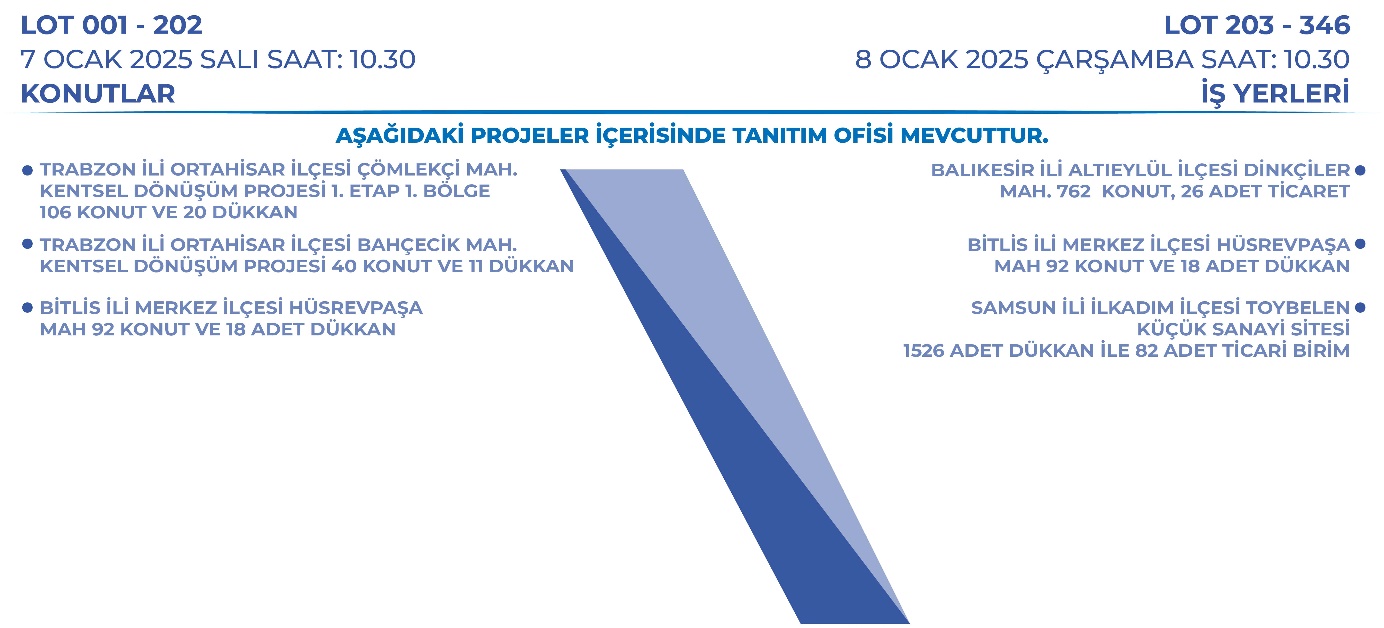 Çevre, Şehircilik ve İklim Değişikliği Bakanlığı Toplu Konut İdaresi Başkanlığı (TOKİ), 47 ilde açık artırma yöntemiyle konut ve iş yerlerinin satışını gerçekleştirecek. İşte açık artırmaya ilişkin detaylar.. Çevre, Şehircilik ve İklim Değişikliği Bakanlığı Toplu Konut İdaresi Başkanlığı (TOKİ) Ankara ve İstanbul'un da aralarında bulunduğu 47 ildeki 346 gayrimenkulü satışa sunacak. Buna göre Edirne, Bursa, Bilecik, Kocaeli, İstanbul, Balıkesir, İzmir, Aydın, Muğla, Manisa, Isparta, Denizli, Mersin, Adana, Ankara, Çorum, Eskişehir, Karaman, Kırıkkale, Konya, Nevşehir, Uşak, Samsun, Ordu, Rize, Giresun, Gümüşhane, Trabzon, Erzincan, Bolu, Düzce, Kayseri, Bitlis, Nevşehir, Niğde, Bartın, Erzurum, Gaziantep, Elazığ, Bitlis, Iğdır, Muş, Siirt, Tunceli, Tekirdağ, Sakarya, Afyonkarahisar ve Şanlıurfa’da konutlar yüzde 25 peşinatla 72 ay vadede, iş yerleri ise yüzde 15 peşinatla 60 ay vadede satışa sunulacak. Bu kapsamda 7 Ocak 2025 tarihinde konutlar, 8 Ocak 2025 tarihinde ise iş yerleri satışa çıkarılacak. Kaynak: Emlak Müzayede TOKİ konut ve iş yeri açık artırma satışına ilişkin bankacılık hizmetleri ise Türkiye Halk Bankası ve Ziraat Bankası tarafından yürütülecek. Başvurular ve teminatlar, bu bankaların tüm şubeleri aracılığıyla kabul edilecek. Oturumlar da İstanbul TOKİ Hizmet Binası Konferans Salonu ile Ankara Bilkent Otel ve Konferans Merkezi’nde yapılacak. Ayrıca Emlak Müzayede’nin resmi internet adresinden de teklif verilebilecek. İnternet katılımı için kayıtlar ise bir iş günü öncesinde sonlanacak. Satışa ilişkin detaylı bilgiye TOKİ ile Emlak Müzayede’nin resmi internet adresinden ve 0 212 608 15 00 numaralı telefondan ulaşılabilecek. [news_id:756263]