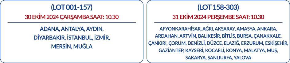 Toplu Konut İdaresi Başkanlığı (TOKİ), 35 ilde toplam 303 arsayı açık artırma yöntemi ile satışa çıkardı. Çevre, Şehircilik ve İklim Değişikliği Bakanlığı Toplu Konut İdaresi Başkanlığı (TOKİ), 35 ilde 303 arsayı açık artırma yöntemiyle satışa çıkardı. İhale süreci bugün Adana, Antalya, Aydın, Diyarbakır, İstanbul, İzmir, Mersin ve Muğla’daki arsaların satışıyla başladı. Bu kapsamda muhammen bedeli 13 milyar 291 milyon 500 bin 471 lira olan toplam 2 milyon 825 bin 559 m2 büyüklüğündeki Adana, Afyonkarahisar, Ağrı, Aksaray, Amasya, Ankara, Antalya, Ardahan, Artvin, Aydın, Balıkesir, Bitlis, Bursa, Çanakkale, Çankırı, Çorum, Denizli, Diyarbakır, Düzce, Elazığ, Erzurum, Eskişehir, Gaziantep, İstanbul, İzmir, Kayseri, Kocaeli, Konya, Malatya, Mersin, Muğla, Muş, Sakarya, Şanlıurfa ve Yalova'da bulunan 303 arsa, açık artırmayla satılacak. Açık artırmalar, Ankara Bilkent Otel ile TOKİ İstanbul Hizmet Binası'nda yapılacak. Ayrıca internetten üzerinden de teklif verilebilecek. Açık artırma toplantısına katılacak gerçek veya tüzel kişilerin ise katılım teminatı olarak toplantı öncesinde EMLAK YÖNETİM'in Halk Bankası A.Ş. Halkalı şubesi nezdindeki hesabına veya toplantı günü salonlarda kurulacak veznelere katılım teminatı yatırması gerekecek. Gerekli teminatı yatıran ve ihaleyi kazanan alıcılar ise konut, ticaret, sanayi, plansız arsalar, sosyal kültürel tesis alanları ile akaryakıt istasyon alanları niteliğindeki arsalara, yüzde 25 peşinat ve 48 ay vade ile sahip olabilecek. Kaynak: Emlakmuzayede [news_id:749951]