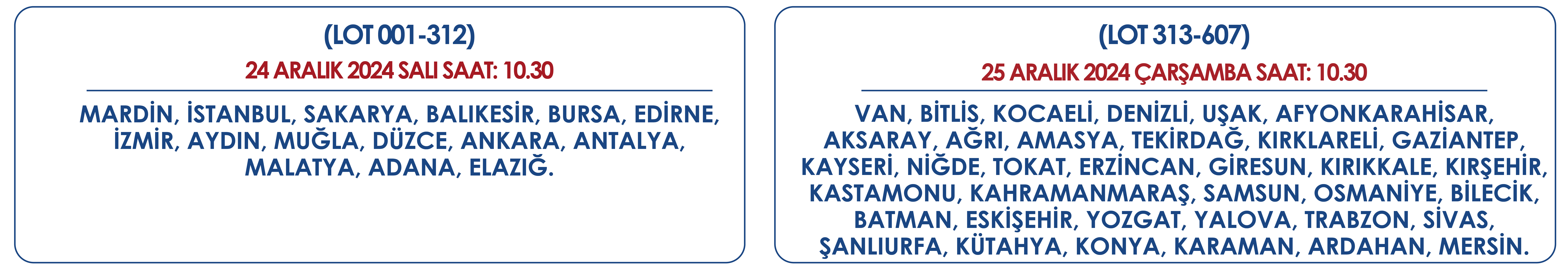 Toplu Konut İdaresi Başkanlığı (TOKİ), 51 ilde toplam 607 arsayı açık artırma yöntemi ile satışa çıkaracak. Çevre, Şehircilik ve İklim Değişikliği Bakanlığı Toplu Konut İdaresi Başkanlığı (TOKİ), 51 ilde 607 arsayı açık artırma yöntemiyle satışa çıkaracağını duyurdu. İlgili duyuruya göre arsalar, 24-25 Aralık 2024 tarihlerinde yapılacak ihalelerle yeni sahiplerini bulacak. İki gün sürecek arsa satışında, tarihler ve il dağılımları ise şöyle olacak: 24 Aralık 2024 saat 10.30: Mardin, İstanbul, Sakarya, Balıkesir, Bursa, Edirne, İzmir, Aydın, Muğla, Düzce, Ankara, Antalya, Malatya, Adana, Elazığ. 25 Aralık 2024 saat 10.30: Van, Bitlis, Kocaeli, Denizli, Uşak, Afyonkarahisar, Aksaray, Ağrı, Amasya, Tekirdağ, Kırklareli, Gaziantep, Kayseri, Niğde, Tokat, Erzincan, Giresun, Kırıkkale, Kırşehir, Kastamonu, Kahramanmaraş, Samsun, Osmaniye, Bilecik, Batman, Eskişehir, Yozgat, Yalova, Trabzon, Sivas, Şanlıurfa, Kütahya, Konya, Karaman, Ardahan, Mersin. Kaynak: TOKİ - Emlakmuzayede Açık artırmalar, Ankara Bilkent Otel ile TOKİ İstanbul Hizmet Binası'nda yapılacak. Ayrıca internetten üzerinden de teklif verilebilecek. Açık artırmaya katılmak isteyen gerçek ve tüzel kişilerin ise Emlak Yönetim Hizmetleri ve Ticaret A.Ş’nin banka hesabına belirlenen teminat bedellerini yatırmaları gerekecek. Teminatlar da arsanın muhammen bedeline göre 15 bin TL’den başlayarak 60 milyon TL’ye kadar çıkacak. İlgili tarihlerde teminat bedelini yatırarak açık artırmayı kazanan alıcılar ise bedelin yüzde 25’i peşin, kalan kısmını 24 ay vadeli olacak şekilde ödeyerek arsa sahibi olabilecek. [news_id:753957] [news_id:756179]