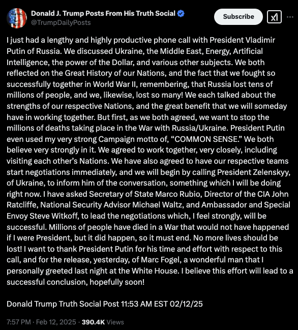 ABD Başkanı Donald Trump, Rusya Devlet Başkanı Vladimir Putin ile gerçekleştirdiği telefon görüşmesinde, Ukrayna'daki savaşın sona erdirilmesi için tarafların müzakerelere başlaması konusunda uzlaştıklarını duyurdu. Trump, görüşmede Ukrayna-Rusya savaşının yanı sıra Orta Doğu’daki gelişmeler, enerji ve yapay zeka konularının da ele alındığını belirterek, sürecin en kısa sürede başlaması için harekete geçildiğini aktardı. Trump, Putin ile gerçekleştirdiği telefon görüşmesinin ardından sahibi olduğu Truth Social platformunda yaptığı açıklamada, Ukrayna'daki savaşın sona erdirilmesi için tarafların müzakere sürecine başlaması konusunda mutabakata vardıklarını ifade etti. Görüşmenin ardından Ukrayna Devlet Başkanı Vladimir Zelenskiy’i bilgilendireceğini açıklayan Trump, sürecin barışçıl bir şekilde ilerlemesi için ABD yönetiminin ilgili isimleri görevlendirdiğini belirtti. MÜZAKERE EKİBİ BELİRLENDİ Müzakerelerin başarılı olacağına inandığını ifade eden Trump, süreci yönetmek üzere Dışişleri Bakanı Marco Rubio, CIA Direktörü John Ratcliffe, Ulusal Güvenlik Danışmanı Michael Waltz ve Orta Doğu Özel Temsilcisi Steve Witkoff’un görevlendirildiğini açıkladı. ABD tarafının üst düzey yetkililerden oluşan bu ekiple müzakere sürecini hızlandıracağını vurgulayan Trump, müzakerelerin en kısa sürede başlaması için çalışmaların sürdüğünü aktardı. TRUMP’TAN PUTİN’E TEŞEKKÜR Trump, görüşme sırasında Rusya'da tutuklu bulunan Marc Fogel’in serbest bırakılması nedeniyle Putin'e teşekkür etti. Kremlin'in aldığı bu kararın önemli bir jest olduğunu belirten Trump, iki ülke arasındaki diplomatik ilişkilerin geliştirilmesi adına olumlu bir adım atıldığını ifade etti. Fogel’in serbest bırakılmasının yanı sıra, iki ülkenin enerji ve yapay zeka konularında da iş birliği yapabileceği mesajını veren Trump, ilerleyen süreçte bu başlıkların da detaylı bir şekilde ele alınacağını vurguladı. Bu gelişmeler, Ukrayna’daki savaşın sona erdirilmesi için yeni bir müzakere sürecinin başladığını gösterirken, Trump ve Putin’in vardığı anlaşmanın sahada nasıl bir etki yaratacağı merak konusu oldu.