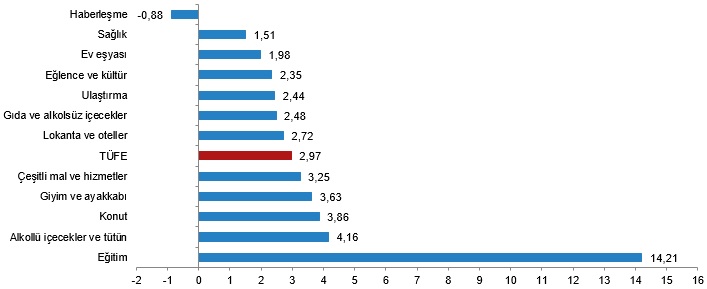 Türkiye İstatistik Kurumu (TÜİK), eylül ayına ilişkin resmi enflasyon rakamlarını açıkladı. TÜİK verilerine göre enflasyon eylül ayında yıllık bazda yüzde 49,38 artış kaydetti. Bu döneme ilişkin piyasaların genel beklentisi ise enflasyonun yüzde 48,30 seviyesinde gerçekleşmesi yönündeydi. Aylık bazda beklenti yüzde 2,20 seviyesinde olurken, aylık artış ise yüzde 2,97 olarak kayıtlara geçti. Ağustos ayında enflasyon aylık yüzde 2,47, yıllık ise yüzde 51,97 artış kaydetmişti. Kaynak: TÜİK Eylül ayı enflasyon verilerinin alt detaylarına göre ise bir önceki yılın aynı ayına göre en az artış gösteren ana grup %26,60 ile ulaştırma oldu. Buna karşılık, bir önceki yılın aynı ayına göre artışın en yüksek olduğu ana grup ise %97,87 ile konut oldu. Kaynak: TÜİK Ana harcama grupları itibarıyla 2024 yılı Eylül ayında bir önceki aya göre azalan ana grup %-0,88 ile haberleşme oldu. Buna karşılık, 2024 yılı Eylül ayında bir önceki aya göre artışın en yüksek olduğu ana grup ise %14,21 ile eğitim oldu. Kaynak: TÜİK Endekste kapsanan 143 temel başlıktan (Amaca Göre Bireysel Tüketim Sınıflaması-COICOP 5'li Düzey) 2024 yılı Eylül ayı itibarıyla, 27 temel başlığın endeksinde düşüş gerçekleşirken, 6 temel başlığın endeksinde değişim olmadı. 110 temel başlığın endeksinde ise artış gerçekleşti. İşlenmemiş gıda ürünleri, enerji, alkollü içkiler ve tütün ile altın hariç TÜFE'deki değişim, 2024 yılı Eylül ayında bir önceki aya göre %3,22, bir önceki yılın Aralık ayına göre %36,44, bir önceki yılın aynı ayına göre %48,23 ve on iki aylık ortalamalara göre %64,74 olarak gerçekleşti. Kaynak: TÜİK ENAG ve İTO'nun verileri yıllık bazda gerilerken aylık bazda yükselmişti Enflasyon Araştırma Grubu’nun (ENAG) hesaplamalarına göre ise enflasyon (E-TÜFE) eylül ayında aylık enflasyon yüzde 5,34, yıllık enflasyon ise yüzde 88,63 artış göstermişti. İstanbul Ticaret Odası (İTO) ise salı günü İstanbul'da perakende fiyatların aylık yüzde 3,90, yıllık ise yüzde 59,18 artış gösterdiğini açıklamıştı. [news_id:747797]