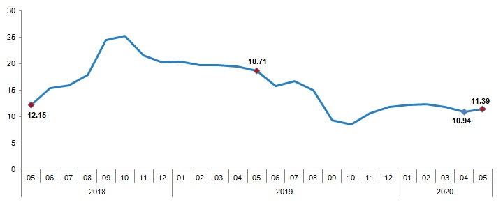 TÜİK, mayıs ayı Tüketici Fiyat Endeksi verilerini açıkladı. Enflasyon mayısta yüzde 1,36 artarken, yıllık bazda yüzde 11,39 oldu. Tüketici Fiyat Endeksi (TÜFE) mayısta aylık bazda yüzde 1,36, Yurt İçi Üretici Fiyat Endeksi (Yİ-ÜFE) yüzde 1,54 artış gösterdi. Yıllık enflasyon tüketici fiyatlarında yüzde 11,39, yurt içi üretici fiyatlarında yüzde 5,53 oldu. Türkiye İstatistik Kurumu (TÜİK) verilerine göre, mayıs ayı itibarıyla 12 aylık ortalamalar dikkate alındığında, tüketici fiyatları yüzde 12,1, yurt içi üretici fiyatları yüzde 9,14 arttı. Aylık bazda TÜFE yüzde 1,36, Yİ-ÜFE yüzde 1,54 artış gösterdi. TÜFE, mayısta geçen yılın aralık ayına göre yüzde 4,57, geçen yılın aynı ayına göre yüzde 11,39 yükseldi. Yİ-ÜFE ise Aralık 2019'a göre yüzde 6,15, geçen yılın mayıs ayına göre yüzde 5,53 arttı. TÜFE yıllık değişim oranları (%), Mayıs 2020