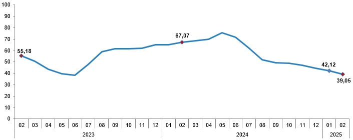 Türkiye İstatistik Kurumu (TÜİK), şubat ayına ilişkin resmi enflasyon rakamlarını açıkladı. TÜİK verilerine göre enflasyon şubat ayında yıllık bazda yüzde 39,05 artış kaydetti. Bu döneme ilişkin piyasaların genel beklentisi ise enflasyonun yüzde 39,90 seviyesinde gerçekleşmesi yönündeydi. Kaynak: TÜİK Aylık bazda beklenti yüzde 2,85 seviyesinde olurken aylık artış ise yüzde 2,27 olarak kayıtlara geçti. Ana harcama grupları itibarıyla 2025 yılı Şubat ayında bir önceki aya göre en çok azalan ana grup %5,06 ile giyim ve ayakkabı oldu. Buna karşılık, 2025 yılı Şubat ayında bir önceki aya göre artışın en yüksek olduğu ana grup ise %9,92 ile eğitim oldu. Kaynak: TÜİK ENAG ve İTO'nun enflasyon hesabı Enflasyon Araştırma Grubu’nun (ENAG) hesaplamalarına göre ise enflasyon (E-TÜFE) şubat ayında aylık yüzde 3,37, yıllık ise yüzde 79,51 artış göstermişti. İstanbul Ticaret Odası (İTO) da cumartesi günü İstanbul'da perakende fiyatların aylık yüzde 3,19, yıllık ise yüzde 45,15 artış gösterdiğini açıklamıştı. [news_id:763606]