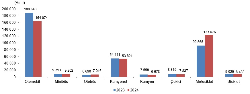 TÜİK verilerine göre Türkiye'de geçen yıl 1 milyon 444 bin 27 trafik kazası meydana geldi. Türkiye İstatistik Kurumu (TÜİK), 2024 yılı kara yolu trafik kazası istatistiklerini yayımladı. Buna göre, geçen yıl meydana gelen trafik kazası sayısı bir önceki yıla göre yüzde 9,88 artışla 1 milyon 444 bin 27 oldu. Bu sayının 1 milyon 177 bin 172'sini hasarlı, 266 bin 855'ini ölümlü, yaralanmalı kazalar oluşturdu. Yıl içinde meydana gelen ölümlü, yaralanmalı trafik kazalarının yüzde 85,5'i yerleşim yeri içinde, yüzde 14,5'i ise yerleşim yeri dışında meydana geldi. Türkiye'deki toplam motorlu kara taşıtı sayısı 2023'te 28,7 milyon iken 2024'te 31,3 milyona yükseldi. Kara yolu trafik kazalarında ölen kişi sayısı ise 2023 yılında 6 bin 548 iken 2024 yılında 6 bin 352 oldu. Böylece 100 bin taşıt başına trafik kazası ölü sayısı 2023 yılında 22,8 iken 2024 yılında 20,3'e geriledi. Trafik kazalarında 385 bin 117 kişi yaralandı. Türkiye'de geçen yıl meydana gelen 266 bin 855 ölümlü, yaralanmalı trafik kazasının 228 bin 120'si yerleşim yeri içinde, 38 bin 735'i yerleşim yeri dışında gerçekleşti. Ölümlerin yüzde 56,4'ü, yaralanmaların yüzde 80,5'i yerleşim yeri içinde, ölümlerin yüzde 43,6'sı, yaralanmaların yüzde 19,5'i yerleşim yeri dışında oldu. Söz konusu dönemde meydana gelen ölümlü, yaralanmalı trafik kazaları sonucunda 2 bin 713 kaza yerinde, 3 bin 639 kişi ise sağlık kuruluşlarına sevk edildikten sonra kazanın sebep ve tesiriyle 30 gün içinde hayatını kaybetti. Türkiye'de 2024'te bir önceki yıla göre trafikteki motorlu kara taşıtı sayısı yüzde 8,9, toplam kaza sayısı yüzde 9,9, ölümlü, yaralanmalı kaza sayısı yüzde 13,5, hasarlı kaza sayısı yüzde 9,1 ve yaralı sayısı yüzde 9,9 artarken, ölü sayısı toplamda yüzde 3 azaldı. İllere göre ölümlü, yaralanmalı kaza sayıları incelendiğinde, en fazla ölü sayısı 325 ile Ankara'da, en fazla yaralı sayısı 41 bin 414 ile İstanbul'da görülürken, en az ölü sayısı 4 ile Ardahan'da, en az yaralı sayısı ise 331 ile Bayburt'ta gerçekleşti. Türkiye'de karayolu trafik kazası ölü sayısında ilk 10 il şöyle listelendi: Kaynak: TÜİK Ölenlerin yüzde 48,4'ü sürücüler Kara yolu ağında geçen yıl gerçekleşen trafik kazalarında ölen kişilerin yüzde 48,4'ünü sürücü, yüzde 30,6'sını yolcu, yüzde 21'ini ise yayalar oluşturdu. Trafik kazalarında ölenler ve yaralananlar cinsiyetlerine göre incelendiğinde ise ölenlerin yüzde 76,2'sinin erkek, yüzde 23,8'inin kadın, yaralananların ise yüzde 69,3'ünün erkek, yüzde 30,7'sinin kadın olduğu görüldü. Son 10 yılda 28 bin 8 sürücü, 20 bin 646 yolcu, 14 bin 108 yaya öldü. Türkiye'de ölümlü, yaralanmalı trafik kazasına neden olan toplam 318 bin 926 kusura bakıldığında, kusurların yüzde 90,1'inin sürücü, yüzde 8,2'sinin yaya, yüzde 0,8'inin taşıt, yüzde 0,5'inin yolcu ve yüzde 0,3'ünün yol kaynaklı olduğu belirlendi. Kusurlar alt başlıklara göre incelendiğinde "Araç hızını yol, hava ve trafiğin gerektirdiği şartlara uydurmamak" kusuru toplam 318 bin 926 kusurun 105 bin 802'sini oluşturdu ve en sık görülen kusur oldu. "Kavşaklarda geçiş önceliğine uymamak" kusuru 46 bin 458 ile en sık görülen ikinci kusur olurken, "Manevraları düzenleyen genel şartlara uymamak" 26 bin 487 kusur ile 2024'te en sık görülen üçüncü kusur oldu. Ölümler kazanın oluş şekline göre incelendiğinde, ilk üç sırada 1295 ölüm ile yayaya çarpma, 1281 ölümle yoldan çıkma ve 1141 ölümle yandan çarpma yer aldı. Kara yolu ağında meydana gelen 266 bin 855 ölümlü, yaralanmalı kazanın yüzde 65,3'ü gündüz, yüzde 32,6'sı gece ve yüzde 2,1'i alaca karanlıkta gerçekleşti. Kaza ve sonuçları değerlendirildiğinde, ölümlü, yaralanmalı kazaların yüzde 51,9'u tek araçlı, yüzde 41,9'u iki araçlı ve yüzde 6,2'si çok araçlı kazalardan oluştu. Yaralanmaların ise yüzde 53,9'u iki araçlı, yüzde 38,6'sı tek araçlı ve yüzde 7,5'i çok araçlı kazalarda meydana geldi. Ölümlü, yaralanmalı kazaların yüzde 52,8'i iki araçlı, yüzde 41,1'i tek araçlı ve yüzde 6,1'i ise çok araçlı kazalarda yaşandı. Ölümlü, yaralanmalı trafik kazasına karışan toplam 392 bin 740 taşıtın yüzde 41,8'i otomobil, yüzde 31,5'i motosiklet, yüzde 13,7'si kamyonet, yüzde 2,3'ü minibüs, yüzde 2,2'si bisiklet, yüzde 2'si çekici, yüzde 1,8'i otobüs, yüzde 1,7'si kamyon, yüzde 1,2'si bilinmeyen, yüzde 0,8'i traktör, yüzde 0,7'si elektrikli skuter ve yüzde 0,3'ü özel amaçlı, iş makinesi, ambulans, tren, tramvay, at arabası taşıtlarından oluştu. Son 10 yılda Türkiye'de ölümlü yaralanmalı trafik kazalarına toplam 3 milyon 116 bin 872 taşıt karıştı. Kaynak: TÜİK (Seçilmiş taşıt cinslerine göre ölümlü yaralanmalı kazaya karışan taşıt sayısı, 2023, 2024) En çok kaza ağustosta, en az kaza ocakta Türkiye'de geçen yıl en fazla ölümlü, yaralanmalı kazanın meydana geldiği ay yüzde 10 ile ağustos oldu. En az kaza ise yüzde 6,1 ile ocakta gerçekleşti. Haftanın günlerine göre bakıldığında ise ölümlü, yaralanmalı kazaların yüzde 15,2 ile en fazla cuma günü ve yüzde 13,7 ile en az pazar günü meydana geldiği görüldü. [news_id:762737]
