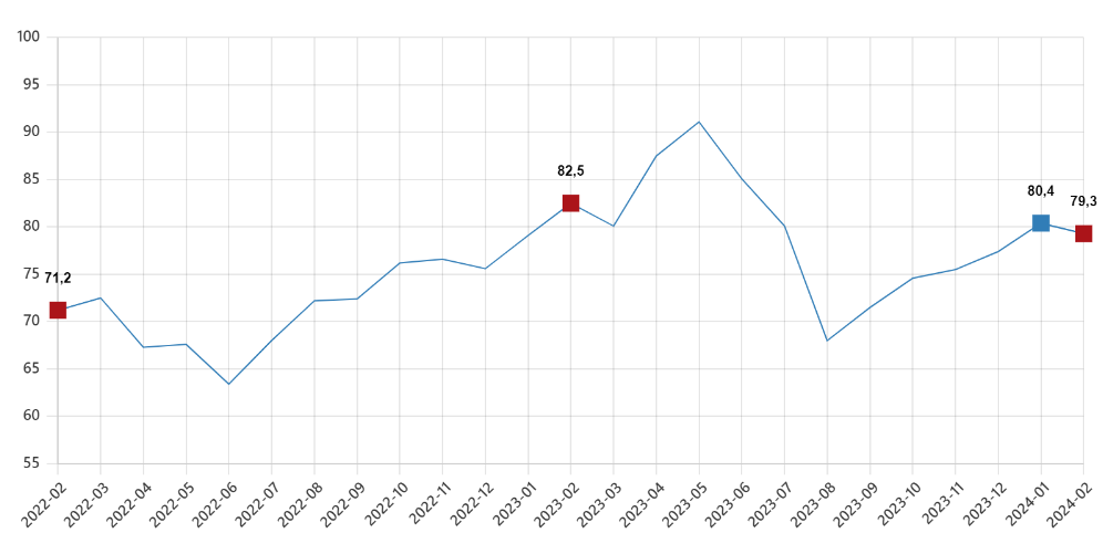Tüketici güven endeksi, şubat ayında 79,3 seviyesine gerileyerek aralıksız 5 aylık yükseliş trendini sonlandırdı. Türkiye İstatistik Kurumu ve Türkiye Cumhuriyet Merkez Bankası iş birliği ile yürütülen tüketici eğilim anketi sonuçları yayımlandı. Buna göre Tüketici Güven Endeksi, ocak ayında 80,4 iken şubat ayında yüzde 1,3 oranında azalarak 79,3 oldu. Kaynak: TÜİK Tüketici Güven Endeksi’nin değerleri ne anlama geliyor? Tüketici güven endeksi 0-200 aralığında değer alabilmektedir. Tüketici güven endeksinin 100'den büyük olması tüketici güveninde iyimser durumu, 100'den küçük olması tüketici güveninde kötümser durumu göstermektedir.
