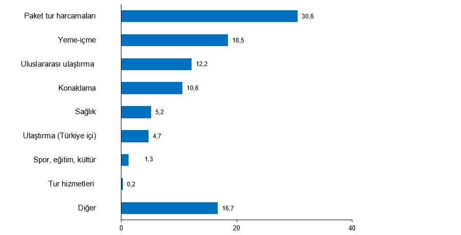 TÜİK verilerine göre turizm geliri ikinci çeyrekte bir önceki yılın aynı çeyreğine göre yüzde 11,8 artarak 14 milyar 875 milyon dolar oldu. Bu rakam ise turizm gelirlerinde ikinci çeyrek rekorunun kırıldığını gösterdi. Türkiye İstatistik Kurumu 2024 2. çeyreğe ilişkin Turizm İstatistiklerini açıkladı. Turizm geliri nisan, mayıs ve haziran aylarından oluşan ikinci çeyrekte bir önceki yılın aynı çeyreğine göre %11,8 artarak 14 milyar 875 milyon 518 bin dolar oldu. Turizm gelirinin %15,9'u ise ülkemizi ziyaret eden yurt dışı ikametli vatandaşlardan elde edildi. Bu çeyrekte turizm geliri içerisindeki paket tur harcamalarının payı %30,6, yeme içme harcamalarının payı %18,5, uluslararası ulaştırma harcamalarının payı ise %12,2 oldu. Bir önceki yılın aynı dönemine göre paket tur harcamaları %32,5, yeme içme harcamaları %10,6 ve uluslararası ulaştırma harcamaları %1,9 arttı. Bu çeyrekte yapılan harcamaların 10 milyar 330 milyon 968 bin dolarını kişisel harcamalar, 4 milyar 544 milyon 550 bin dolarını ise paket tur harcamaları oluşturdu. Kaynak: TÜİK Ziyaretçi sayısı %15 arttı Türkiye Cumhuriyeti Kültür ve Turizm Bakanı Mehmet Nuri Ersoy, "En çok ziyaretçi sıralamasında Rusya ilk sırada yer alıyor" açıklamasını yaptı. Türkiye'den çıkış yapan ziyaretçi sayısı ikinci çeyrekte bir önceki yılın aynı çeyreğine göre %15 artarak 16 milyon 97 bin 884 kişi oldu. Ziyaretçilerin %14,9'unu 2 milyon 405 bin 675 kişi ile yurt dışında ikamet eden vatandaşlar oluşturdu. Bu çeyrekte Türkiye'den çıkış yapan ziyaretçilerin gecelik ortalama harcaması 101 dolar oldu. Yurt dışında ikamet eden vatandaşların gecelik ortalama harcaması ise 69 dolar oldu. Turizm gideri %3,9 azaldı Yurt içinde ikamet edip başka ülkeleri ziyaret eden vatandaşların harcamalarından oluşan turizm gideri, geçen yılın aynı çeyreğine göre %3,9 azalarak 1 milyar 955 milyon 807 bin dolar oldu. Bunun 1 milyar 610 milyon 431 bin dolarını kişisel harcamalar, 345 milyon 377 bin dolarını ise paket tur harcamaları oluşturdu. Yurt dışını ziyaret eden vatandaşlar %3 arttı Bu çeyrekte yurt dışını ziyaret eden vatandaş sayısı bir önceki yılın aynı çeyreğine göre %3 artarak 2 milyon 963 bin 788 kişi oldu. Bunların kişi başı ortalama harcaması 660 dolar olarak gerçekleşti. Kaynak: TÜİK