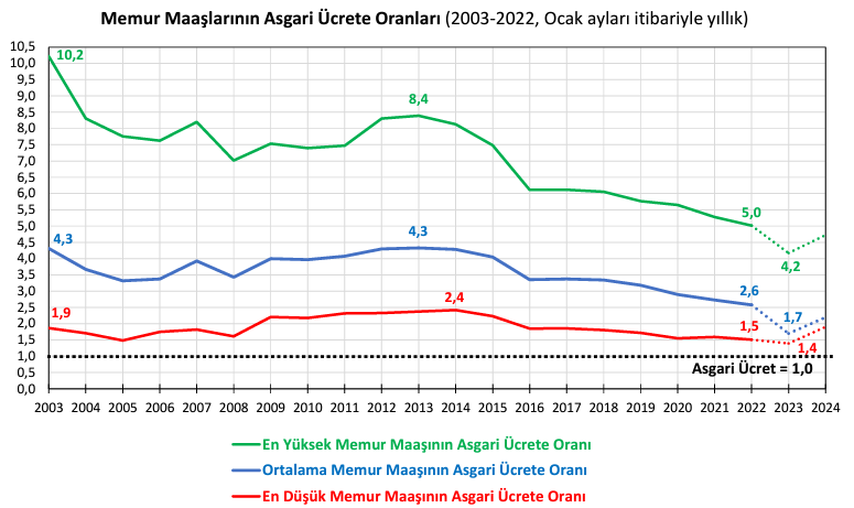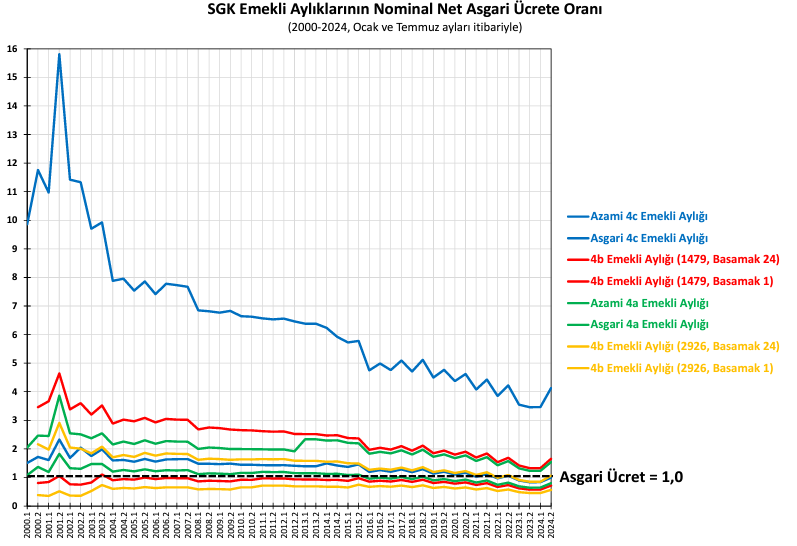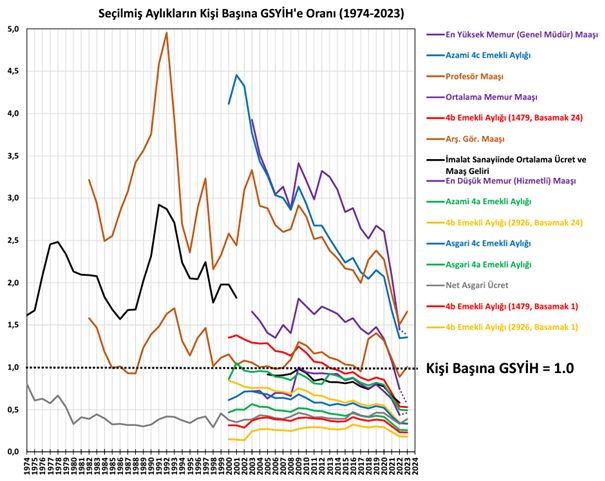 Prof. Dr. Aykut Kibritçioğlu'nun yeni araştırması, Türkiye’de maaşların asgari ücrete yaklaştığını ve bu durumun gelir dağılımında ciddi sorunlara yol açarak ekonomik refahı tehdit ettiğini ortaya koydu. Türk-Alman Üniversitesi'nden İktisatçı Prof. Dr. Aykut Kibritçioğlu'nun gerçekleştirdiği son araştırma, Türkiye'deki maaş ve ücretlerin asgari ücret seviyesine yaklaştığını ortaya koydu. Araştırma, özellikle son yıllarda artan enflasyonun etkisiyle asgari ücretin yükseltildiğini, ancak diğer maaş ve ücret gruplarının bu artışa uyum sağlayamadığını gösterdi. Bu durumun ise geniş bir kesimde reel gelir kaybına ve maddi zorluklara neden olduğu bildirildi. Prof. Dr. Kibritçioğlu'nun araştırmasında, kamu çalışanları, akademisyenler, imalat sanayi işçileri ve SGK emeklileri gibi farklı gelir gruplarının maaşlarının asgari ücret ve kişi başına düşen milli gelirle (GSYİH) ilişkisi de incelendi. Kişi başına düşen milli gelirle ilişkili sonuçlar ise 2000’li yıllardan itibaren (özellikle 2014 yılından itibaren) maaşların genel olarak asgari ücret seviyesine gerilediğini ve bazı durumlarda bu seviyenin de altına düştüğünü gösterdi. Kaynak: TEPAV Öte yandan araştırma özellikle memur maaşlarının asgari ücrete yakınsadığına işaret etti. Rapordaki bulgulara göre memur maaşları 2014’ten sonra hızla asgari ücret seviyesine indi. 2003-2024 döneminin tamamı bir bütün olarak dikkate alındığında ise en yüksek dereceli memur maaşlarının dönem boyunca ciddi biçimde azaldığı, ortalama maaşların daha yavaş da olsa asgari ücrete doğru yaklaştığı, en düşük memur maaşlarının ise 2014’te asgari ücretin 2,4 katına doğru yükseldikten sonra 2023’te 1,4 katının altına doğru indiği görüldü. Kaynak: TEPAV Imalat sanayide ortalama ücret reel olarak geriledi Araştırma sonuçlarında benzer şekilde imalat sanayiinde çalışanların ortalama ücretlerinin de asgari ücrete doğru gerilediği görüldü. Hesaplamalara göre imalat sanayiinde çalışanların aylık gelirleri açısından özellikle 2000’li yıllarda belirgin bir düşüş ve asgari ücrete doğru yakınsama gerçekleşti. Kaynak: TEPAV Aynı şekilde son dönemdeki emekli maaşlarında da asgari ücretle kıyaslandığında ciddi bir gerileme görüldü. Kaynak: TEPAV Raporda çözüm önerileri olarak, "çoklu asgari ücret sistemi" önerisi getirilirken, sendikal hakların güçlendirilmesinin çalışanların refahını artırmada önemli bir adım olarak görüldüğü belirtildi. "Çoklu asgari ücret sistemi" uygulanabilir Buna göre Prof. Kibritçioğlu, mevcut sosyal güvenlik ve asgari ücret sisteminin yeniden ele alınarak çalışanlar lehine reforma tabi tutulması gerektiğini savundu. Çalışmasında, daha adil bir gelir dağılımı sağlamak amacıyla "çoklu asgari ücret sistemi" gibi yenilikçi politikaların uygulanmasını öneren Kibritçioğlu, farklı unvanlar ve gerekli vasıflar için farklı asgari ücretler belirlenmesi gerektiğini aktardı. Sendikal haklar güçlendirilmeli Ayrıca, araştırmada sendikal hakların güçlendirilmesi gerektiğine de dikkati çeken Kibritçioğlu, çalışanların daha adil bir ücret pazarlığı yapabilmesi için sendikaların güçlendirilmesi ve mevcut engellerin kaldırılması gerektiğini vurguladı. Özetle asgari ücretle çalışanların yanı sıra diğer gelir gruplarının da hak ettikleri düzeyde gelir elde edebilmeleri için atılacak adımların ülke genelinde daha sürdürülebilir bir ekonomik yapının inşası açısından büyük önem taşıdığı bildirildi. [news_id:742461]