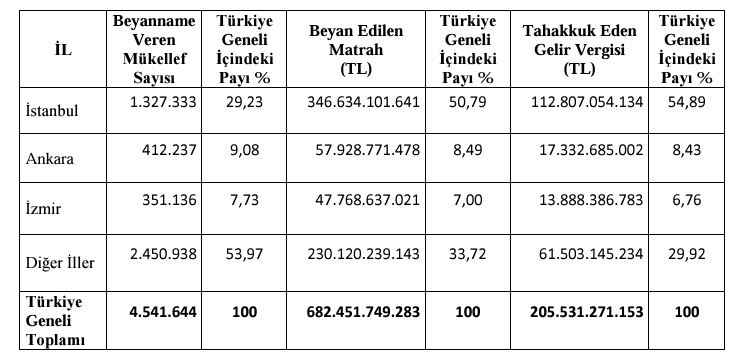 Türkiye'nin 2023 gelir vergisi rekortmeni, geçtiğimiz yıl olduğu gibi yine Baykar Yönetim Kurulu Başkanı Selçuk Bayraktar oldu. Gelir İdaresi Başkanlığı, 2023 vergilendirme dönemine ilişkin yıllık gelir vergisi ve kurumlar vergisi beyannamelerinin değerlendirilmesi sonucunda Türkiye genelinde en fazla vergi beyan eden 100 mükellef listesini açıkladı. Buna göre Türkiye'nin 2023 gelir vergisi rekortmeni Baykar Yönetim Kurulu Başkanı Selçuk Bayraktar oldu. Onu ikinci sıradaki Lütfü Haluk Bayraktar ve üçüncü sıradaki Mustafa Rahmi Koç takip etti. Listede ilk on içerisinde yer alan ve adının açıklanmasını isteyen diğer isimler ise beşinci sıradaki İpek Kıraç ve yedinci sıradaki Mehmet Ömer Koç oldu. İlk on içerisinde yer alan diğer rekortmenler ise adının açıklanmasını istemedi. En fazla vergi veren iller GİB tarafından yapılan basın açıklamasında iller bazında da elde edilen vergi gelirleri paylaşıldı. Buna göre konuyla ilgili bültende şunlar aktarıldı: "Türkiye genelinde 2023 vergilendirme dönemi yıllık gelir vergisi beyanlarına ilişkin olarak, 4 milyon 541 bin 644 mükellef tarafından yıllık gelir vergisi beyannamesi verilmiştir. Verilen yıllık gelir vergisi beyannameleri ile 682 milyar 451 milyon 749 bin 283 TL matrah beyan edilmiş ve beyan edilen bu tutar üzerinden 205 milyar 531 milyon 271 bin 153 TL gelir vergisi tahakkuk ettirilmiştir. Türkiye geneli gelir vergisi mükelleflerinden en fazla vergi tahakkuk ettirilen ilk 100 mükellefin illere göre dağılımı; İstanbul, Ankara, İzmir, Gaziantep, Eskişehir, Tekirdağ ve Çorum olarak gerçekleşmiştir. Türkiye genelinde 2023 vergilendirme dönemi için her bir mükellef ortalama 150 bin 265 TL matrah beyanında bulunmuş ve bu matrah üzerinden ortalama 45 bin 255 TL gelir vergisi tahakkuk ettirilmiştir. 2023 yılı vergilendirme dönemi beyanlarına göre İstanbul, Ankara ve İzmir illeri ile diğer illerde; beyanname veren mükellef sayısı, matrah tutarları ve tahakkuk eden gelir vergisi tutarları ile bunların Türkiye geneli içindeki payları aşağıdaki tabloda belirtilmiştir." Kaynak: GİB Kurumlar vergisinde lider Ziraat Bankası Türkiye kurumlar vergisi rekortmenliğinde ise ilk üç sıra Ziraat Bankası, Garanti Bankası ve Akbank şeklinde oluştu. Gelirler İdaresi Başkanlığı tarafından paylaşılan verilere göre listenin ilk on sırası şöyle oldu: Kaynak: GİB Öte yandan Türkiye genelinde 2023 yılı vergilendirme dönemi kurumlar vergisi beyanlarına ilişkin olarak 1 milyon 111 bin 944 mükellef tarafından kurumlar vergisi beyannamesi verildiği belirtilen açıklamada şunlar kaydedildi: "Verilen kurumlar vergisi beyannameleri ile 3 trilyon 813 milyar 935 milyon 660 bin 633 TL matrah beyan edilmiş ve beyan edilen bu tutar üzerinden 833 milyar 246 milyon 376 bin 901 TL kurumlar vergisi tahakkuk ettirilmiştir. Türkiye geneli kurumlar vergisi mükelleflerinden en fazla vergi tahakkuk ettirilen ilk 100 mükellefin Vergi Dairesi Başkanlıkları (VDB) ve Defterdarlıklara göre dağılımı; Büyük Mükellefler VDB (59), İstanbul VDB (17), Ankara VDB (16), Kocaeli VDB (2), İzmir VDB (1), Antalya VDB (1), Bursa VDB (1), Eskişehir VDB (1), Hatay VDB (1) ve Zonguldak VDB (1) olarak gerçekleşmiştir. 2023 yılı vergilendirme dönemi için her bir mükellef kurum ortalama 3 milyon 429 bin 971 TL matrah beyanında bulunmuş ve bu matrah üzerinden ortalama 749 bin 360 TL kurumlar vergisi tahakkuk ettirilmiştir." 2023 vergilendirme dönemi beyanlarına göre dört Vergi Dairesi Başkanlığı ile diğer Vergi Dairesi Başkanlıkları ve Defterdarlıkların beyanname veren mükellef sayısı, beyan edilen matrah ve tahakkuk eden vergi tutarları ile bunların Türkiye geneli içindeki payları: Kaynak: GİB