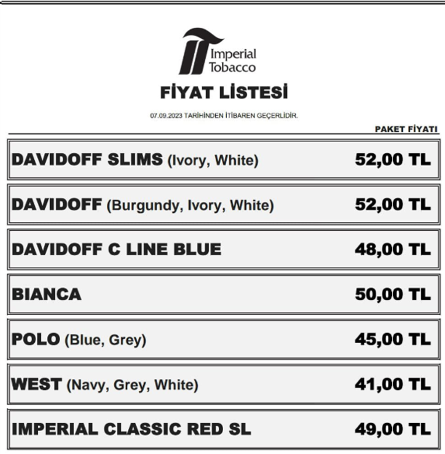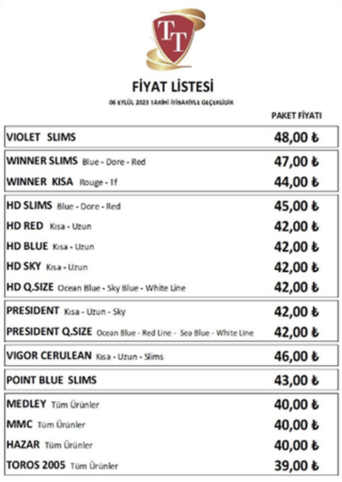 Eylül ayına girilmesiyle birlikte sigara fiyatları da zamlı listelerini yayımlamaya başladı. Buna göre Philip Morris ve JTİ grubunun ardından 3 sigara grubuna daha zam geldi. Eylül ayının başlamasının ardından sigara zamları da hız kazandı. Buna göre göre ilk olarak 4 Eylül’de Philip Morris sigara fiyatları zamlanırken, 5 Eylül’de ise JTİ grubuna ait sigaralar zamlanmıştı. Dün ise sigara firmaları zamlı listelerini yayımlamaya devam etti. Buna göre 6 Eylül itibarıyla BAT ve T&T sigara gruplarına ait sigaralar zamlandı. Kaynak: Milli Gazete Kaynak: Milli Gazete 7 Eylül tarihinden itibaren ise Imperial Tobacco zamlı fiyat listesini yayımladı. Kaynak: Milli Gazete