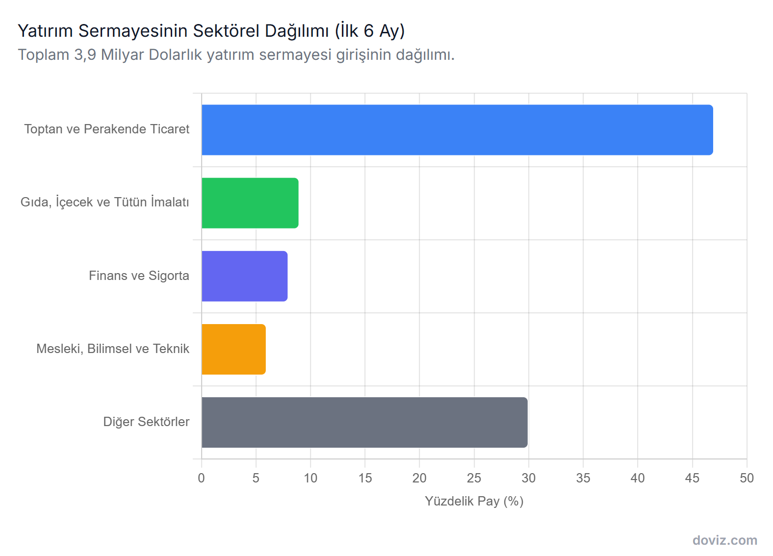 Uluslararası Yatırımcılar Derneği’nin (YASED) Ödemeler Dengesi İstatistiklerinden derleyerek hazırladığı “Rakamlarla Uluslararası Doğrudan Yatırımlar Bültenine” göre, 2025 yılının ilk 6 ayında, Türkiye’ye 6,3 milyar dolarlık Uluslararası Doğrudan Yatırım (UDY) girişi gerçekleşti. Uluslararası Yatırımcılar Derneği’nin Türkiye Cumhuriyet Merkez Bankası tarafından paylaşılan Ödemeler Dengesi İstatistiklerinden derleyerek hazırladığı “Rakamlarla Uluslararası Doğrudan Yatırımlar Bülteni” verilerine göre, geçen yılın aynı dönemine kıyasla yüzde 27 oranında artış görüldü ve 2002 yılından itibaren Türkiye’ye gelen toplam uluslararası doğrudan yatırım girişleri 281 milyar doları aştı. Bugün açıklanan verilere göre 2025 yılının Haziran ayında Türkiye’ye 1,6 milyar dolar değerinde uluslararası doğrudan yatırım girişi oldu. Böylece yılın ilk altı ayındaki toplam giriş 6,3 milyar dolar seviyesinde gerçekleşti. İlk yarıda yatırımların 3,9 milyar dolarlık kısmı yatırım sermayesi şeklinde olurken, 2,2 milyar dolarlık kısmı borçlanma araçları yoluyla geldi ve 0,9 milyar dolarlık kısım yabancı uyruklulara gayrimenkul satışıyla kaydedildi. Bu dönemde 669 milyon dolar tutarında yatırım tasfiyesi aşağı yönlü etki yarattı ve toplam girişler bu etkiye rağmen 6,3 milyar dolar olarak belirlendi. Sektörlere göre yatırım dağılımı 2025 yılının ilk altı ayında gerçekleşen 3,9 milyar dolarlık yatırım sermayesi girişleri incelendiğinde, 1,8 milyar dolarlık yatırım ile toptan ve perakende ticaret sektörünün yüzde 47 pay aldığı görüldü. Gıda, içecek ve tütün ürünleri imalatı, geçmiş kümülatif performansının üzerinde bir düzeye ulaşarak bu dönemdeki yatırım sermayesi girişlerinin yüzde 9’unu çekti. Yatırım çekme oranında öne çıkan diğer sektörler arasında yüzde 8 pay ile finans ve sigorta faaliyetleri ile yüzde 6 pay ile mesleki, bilimsel ve teknik faaliyetler yer aldı. Ülkelere ve bölgelere göre yatırım akışı 2002-2024 dönemi toplamında yüzde 58’lik pay sahibi olan Avrupa Birliği ülkeleri, 2025’in ilk yarısında Türkiye’ye gelen uluslararası doğrudan yatırımların yüzde 52’sini oluşturdu. Orta Asya ülkeleri yüzde 20’lik pay ile ikinci sırada yer alırken, 610 milyon dolarlık yatırımıyla Kazakistan bu payda belirleyici rol üstlendi. Yılın ilk yarısında ülkelere göre sıralamada, Hollanda yüzde 35 paya denk gelen 1,4 milyar dolarlık yatırımla ilk sırada yer aldı. Kazakistan yüzde 16 ile ikinci sırada bulunurken, Amerika Birleşik Devletleri yüzde 10, Almanya yüzde 6 ve Azerbaycan yüzde 5 oranında yatırım gerçekleştirdi.