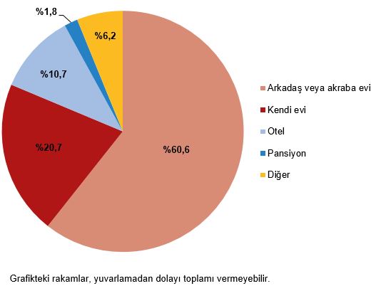 Yerli turistlerin, yurt içinde yaptıkları seyahat harcamaları 2024'ün 3. çeyreğinde yüzde 79,7 artarak 204,9 milyar TL olarak gerçekleşti. Seyahat başına yapılan ortalama harcama ise 7 bin 977 TL oldu. Türkiye İstatistik Kurumu (TÜİK), 2024 3. çeyrek hanehalkı yurt içi turizm istatistiklerini açıkladı. Temmuz, ağustos ve eylül aylarından oluşan 3. çeyrekte, yurt içinde ikamet eden 20 milyon 453 bin kişi seyahate çıktı. Seyahate çıkanların bir ve daha fazla geceleme kaydı ile ülke içinde yaptıkları toplam seyahat sayısı bir önceki yılın aynı çeyreğine göre yüzde 8 artarak 25 milyon 684 bin olarak gerçekleşti. Bu çeyrekte seyahate çıkanlar 224 milyon 68 bin geceleme yaptı. Ortalama geceleme sayısı 8,7 gece oldu. Seyahat başına 7 bin 977 lira harcandı Yerli turistlerin, yurt içinde yaptıkları seyahat harcamaları bir önceki yılın aynı çeyreğine göre yüzde 79,7 artarak 204 milyar 883 milyon 376 bin TL olarak gerçekleşti. Bu harcamaların yüzde 83,8'ini 171 milyar 783 milyon 134 bin TL ile kişisel harcamalar, yüzde 16,2'sini ise 33 milyar 100 milyon 241 bin TL ile paket tur harcamaları oluşturdu. Seyahat başına yapılan ortalama harcama ise 7 bin 977 TL oldu. En fazla pay yeme içmeye Bu çeyrekte harcama türlerinin toplam seyahat harcamaları içerisindeki dağılım oranları incelendiğinde en fazla paya yüzde 30,1 ile yeme ve içme harcamaları, yüzde 20,7 ile konaklama harcamaları ve yüzde 20,6 ile ulaştırma harcamaları sahip oldu. Bu harcama türlerinin geçen yılın aynı dönemine göre değişim oranları incelendiğinde ise yeme ve içme harcamalarında yüzde 70,6, konaklama harcamalarında yüzde 71,4 ve ulaştırma harcamalarında ise yüzde 57,9'luk artış görüldü. Kaynak: TÜİK Seyahatte öncelik yakınları ziyarette Yakınları ziyaret amacı ile yapılan seyahatler yüzde 47,9 ile ilk sırada yer aldı. Seyahate çıkış amaçlarında ikinci sırada yüzde 47,3 ile "gezi, eğlence, tatil", üçüncü sırada ise yüzde 2,2 ile "sağlık" yer aldı. Seyahate çıkanlar en çok arkadaş veya akraba evinde kaldı Bu çeyrekte seyahate çıkanlar 135 milyon 889 bin geceleme sayısı ile en çok arkadaş veya akraba evinde kaldı. Konaklama türlerine göre geceleme sayısında ikinci sırada 46 milyon 340 bin geceleme ile kendi evi yer alırken, otel 24 milyon 19 bin geceleme sayısı ile üçüncü sırada yer aldı. Kaynak: TÜİK