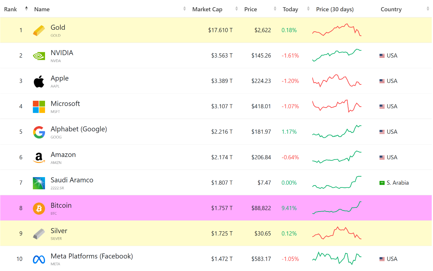 Fed’in faiz indirimlerinden ve ABD seçim sonuçlarından destek bulan Bitcoin, 1,757 trilyon dolarlık piyasa değeriyle gümüşü geride bırakarak sekizinci en büyük varlık oldu. Bitcoin, Amerika Birleşik Devletleri'nde yapılan başkanlık seçimlerini Donald Trump’ın kazanmasının ardından kripto yanlısı bir Kongre beklentisiyle güçlü bir yükseliş ivmesi sergiliyor. ABD’de siyasi gelişmelerin yanında Fed’in faiz indirim sürecini devam ettirmesi de piyasanın risk iştahını artırarak kripto paraların yükselişine katkıda bulunuyor. Bu gelişmelerin ardından işlem hacmine göre lider kripto para birimi Bitcoin ise tüm zamanların zirvesini 89 bin 561 dolara çıkardıktan sonra saat 08.30 itibarıyla yüzde 9,33 artışla 88 bin 604 dolardan işlem görüyor. Haftalık bazda %30’a yaklaşan artış kaydeden Bitcoin, son bir ayda ise sağladığı %40’ın üzerinde getiriyle dikkati çekiyor. Bu yükselişin ardından lider kripto para birimi, yaklaşık 1,757 trilyon dolarlık piyasa değeriyle gümüşü geçerek en büyük sekizinci finansal varlık konumunda bulunuyor. Listenin ilk sırasında ise son zamanlarda güç kaybı yaşayan altın 17,6 trilyon dolarlık piyasa hacmiyle zirvede bulunmaya devam ediyor. Kaynak: CompaniesMarketcap “Kripto paralara soğuk bakan yetkililer görevden alınabilir” İş Yatırım Uluslararası Piyasalar Uzmanı Şant Manukyan ise Trump'ın başkanlık seçimini kazanmasının ardından kripto tarafının en fazla etkilenen alanlardan biri olduğu söylemiş ve kripto para piyasalarındaki yükselişin sadece Trump nedeniyle değil Elon Musk'ın da bu alana sıcak bir isim olmasından kaynaklanabileceğine işaret etmişti. ABD'nin 47. Başkanı seçilen Donald Trump'ın ardından kripto paralara soğuk bakan yetkililerin önümüzdeki dönemde görevden alınabileceğini de belirten Şant Manukyan, konuyla ilgili şunları aktarmıştı: "Söylemler üzerinden bakıldığında kriptoya soğuk bakan Gary Gensler gibi yetkili isimler muhtemelen görevinden alınacak. Ana trendin içinde yukarı hareketin devam edebileceği söylenebilir." [news_id:751805]