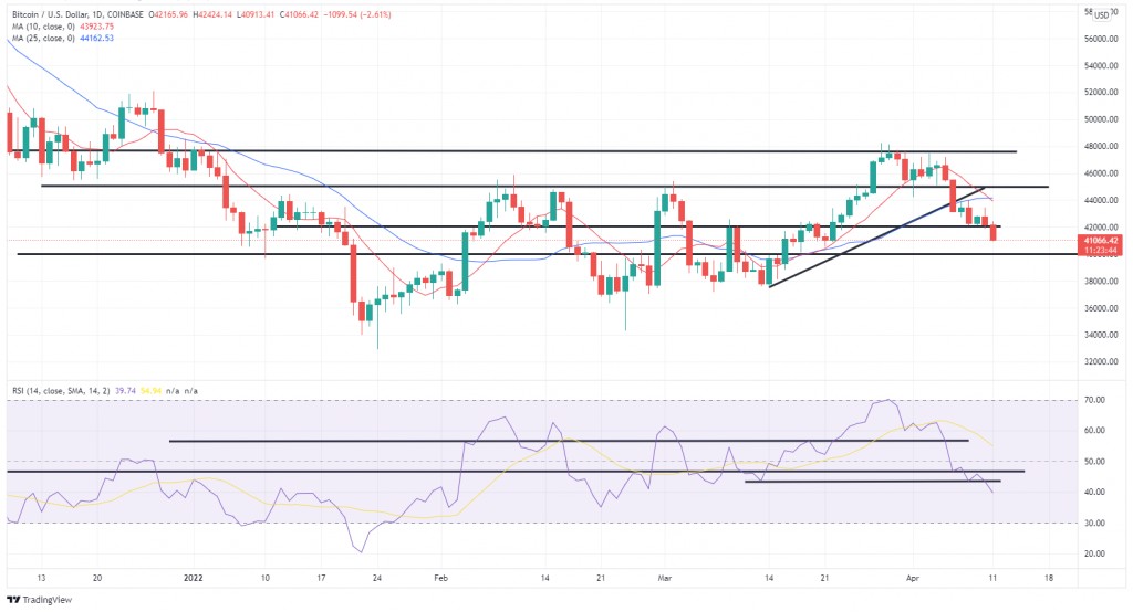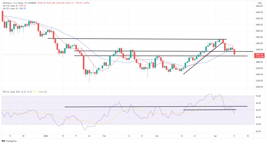 Bitcoin ve Ethereum, kripto pazarlarından kırmızı bir dalga geçerken Pazartesi günü üç haftadan fazla bir süre içinde en düşük seviyelerine düştü. BTC ve ETH %2 ila %5 daha düşük işlem görürken, genel kripto piyasa değeri %3,75 düştü. Bitcoin 24 saatten kısa bir süre önce 43,376,38 doları takiben BTC/USD bugün erken saatlerde 41,055,79 dolara düştü. Bu düşüş, fiyatları uzun vadeli 42.000 dolarlık destek seviyesinin altına iterek üç haftanın en düşük seviyesine getirdi. BTC/USD – Günlük Grafik Kaynak: Tradingview Grafikte görüldüğü gibi, BTC 22 Mart'tan bu yana ilk kez bu tabanın altında işlem görüyor ve düşüş başka bir destek noktasının kırılmasıyla geliyor. Bu, 43.55 tabanını gören 14 günlük RSI, hafta sonu sabit kaldıktan sonra nihayet çöküyor. Yazı yazarken, bu gösterge şu anda iki ayın en düşük noktası olan 40'ta seyrediyor ve düşmeye devam etmesi durumunda BTC'yi 40.000 doların altında görebiliriz. Ethereum ETH'deki düşüş, dünyanın en büyük ikinci kripto para birimi değerinin %5'inden fazlasını kaybettiği için BTC'den bile daha büyüktü. BTC'deki düşüşün iki katı olan bu düşüş, ETH'nin 3.145 dolarlık direnci kırmaya çalıştığı 24 Mart'tan bu yana en düşük noktasına gerilemesine neden oldu. ETH/USD – Günlük Grafik Kaynak: Tradingview ETH neredeyse 3.000 doların altına düşse de, boğaların tipik olarak satın almak istediği bir nokta olan 3.010 dolarda geçici bir taban bulunmuş gibi görünüyor. Grafiğe bakıldığında, muhtemelen ayıların bir toparlanma beklentisiyle kaçması nedeniyle bu zemine çarpıldığından beri kayıplar azaldı. 14 günlük RSI şu anda yaklaşık bir ayın en düşük seviyesi olan 45.10'da seyrediyor ve bu, piyasalar nispeten aşırı satıldığı için boğaların satın alması için başka bir sinyal olabilir.