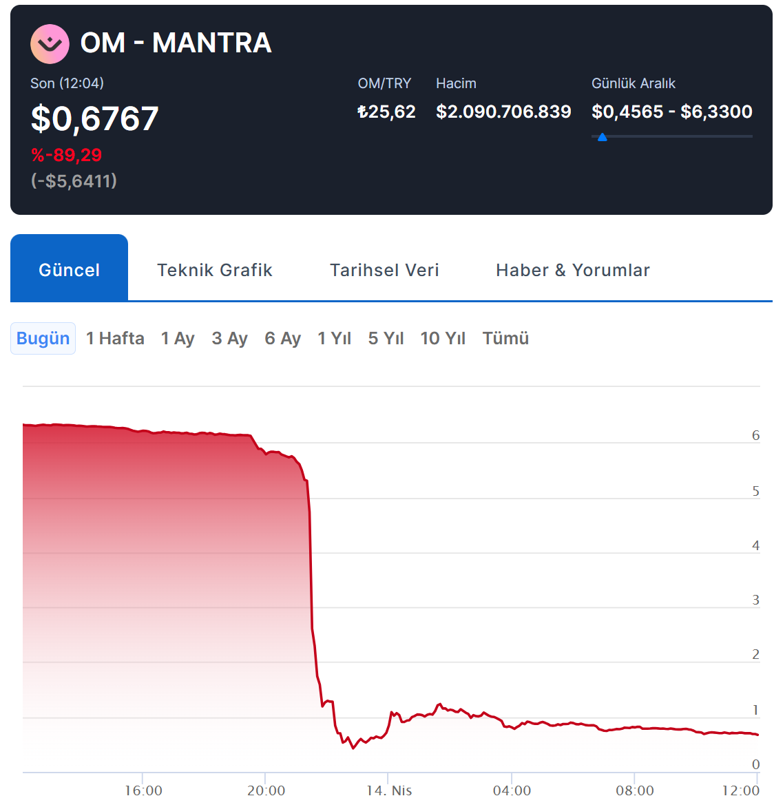 Kripto para piyasası, dün akşam saatleri itibarıyla tarihî düşüşle sarsıldı. En büyük 20 kripto varlık arasında yer alan Mantra (OM), birkaç saat içerisinde yüzde 90'dan fazla değer kaybetti. OM'nin fiyatı, çöküş öncesinde 6,30 dolar seviyesindeyken 0,37 dolara kadar düştü ve 14 Nisan sabahı itibarıyla 0,67 dolar seviyesinden işlem görmeye başladı. Söz konusu sert düşüş, OM’nin piyasa değerini 6,12 milyar dolardan 650 milyon dolara geriletti. Bu değer kaybı, sadece saatler içerisinde yaklaşık 5 milyar doların buhar olmasına neden oldu. OM, 2024 yılında yüzde 400’den fazla değer kazanarak piyasada öne çıkan projelerden biri olmuştu. Gerçek dünya varlıkları (RWA) sektöründe faaliyet gösteren Mantra’nın bu ani düşüşüne dair net bir açıklama yapılmazken, sosyal medyada dolaşan iddialar çeşitli olasılıkları gündeme getirdi. Kurucu ekibin tezgah üstü (OTC) piyasalar üzerinden ellerindeki token’ları sattığı, Telegram grubu dahil olmak üzere projeyi terk ettikleri ya da büyük miktarda OM token’ı tutan bir cüzdanın siber saldırıya uğramış olabileceği ileri sürüldü. Mantra kurucu ortağı JP Mullin, projeye ilişkin sosyal medya platformu X üzerinden yaptığı açıklamada, Telegram grubunun aktif olduğunu ve ekip olarak projeyi terk etmediklerini ifade etti. Mullin, “Buradayız ve hiçbir yere gitmiyoruz” ifadesiyle iddiaları yalanlarken, yaşanan çöküşten kripto borsalarının likidasyon işlemlerini sorumlu tuttu Mullin, OM pozisyonlarının bazı borsalar tarafından kapatıldığını ve bunun çöküşü tetiklediğini öne sürdü. Söz konusu iddialara OKX kurucusu Star Xu yanıt vererek, borsaların verilerinin şeffaf olduğunu ve suçlamaların asılsız olduğunu bildirdi. Mantra (OM), merkeziyetsiz finans (DeFi) alanında faaliyet gösteren ve RWA tokenizasyonuna odaklanan bir Layer-1 blokzincir projesi. OM token, gayrimenkul, sanat eseri ve emtia gibi fiziksel varlıkların dijitalleştirilerek alınıp satılmasını sağlamakta olup, kullanıcılar OM üzerinden borç verme, alma ve diğer DeFi özelliklerine erişim sağlayabilmektedir. Mantra’da yaşanan bu gelişme, kripto piyasasının yüksek volatiliteye olan duyarlılığını ve güven sorunlarını yeniden gündeme taşıdı. [news_id:729358]