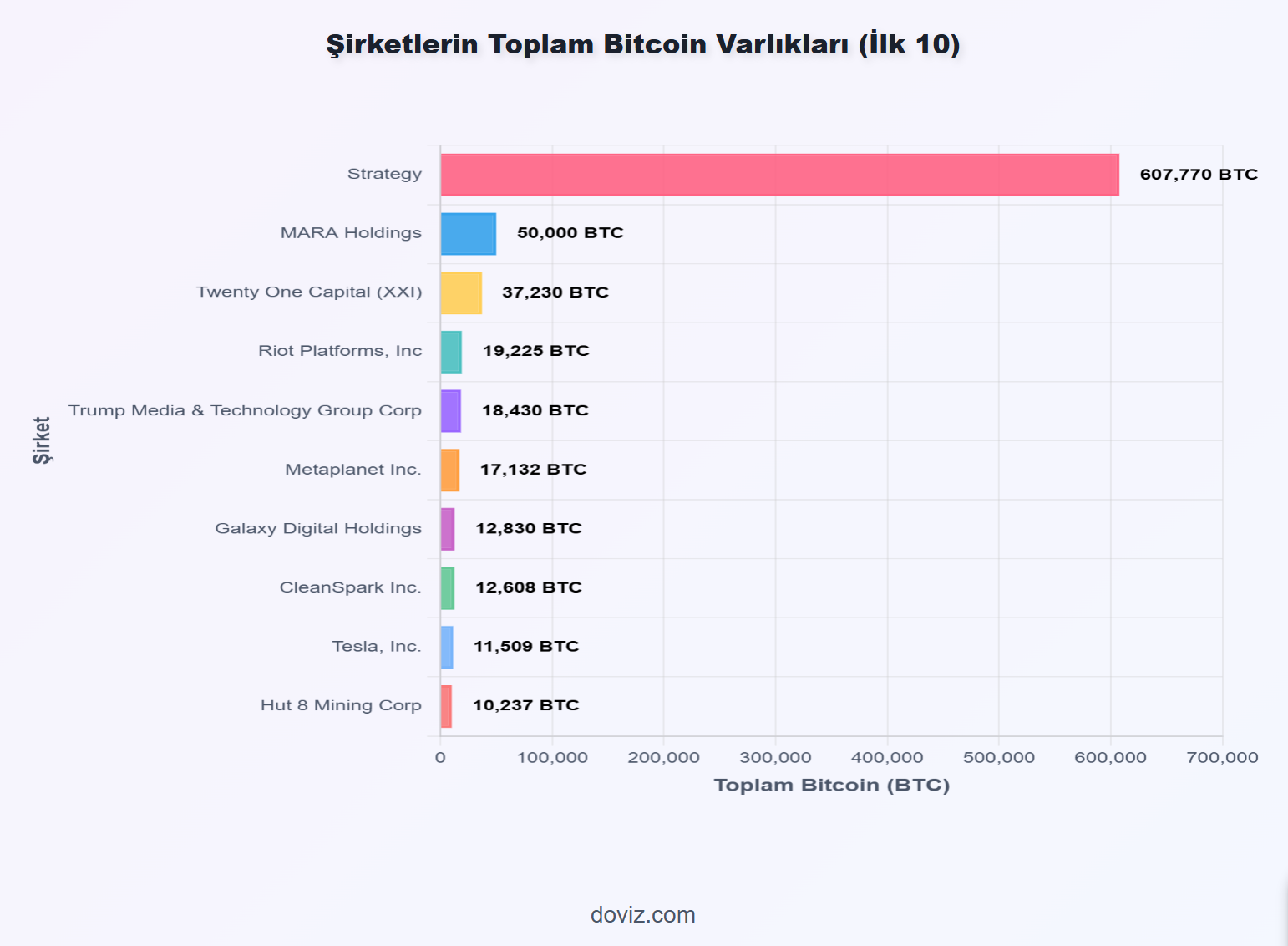 Martı’nın nakit rezervlerinin yaklaşık yüzde 20’sini kripto varlıklara ayıracağının açıklanmasının ardından şirket hisselerinde yüzde 14 düşüş yaşandı. Martı’nın Kurucusu ve CEO’su Oğuz Alper Öktem, sosyal medya hesabından yaptığı paylaşımda, şirketin nakit rezervinin yüzde 20'sini kripto varlıklara ayırma kararı aldıklarını duyurmuştu. Rezerv birikimine ilk adımda Bitcoin ile başlayacaklarını bildiren Öktem, ilerleyen dönemlerde farklı kripto varlıklara da yatırım yapacaklarını açıklamıştı. Öktem’in paylaşımının ardından New York Borsası'nda 11 Temmuz'da halka arz olan Martı payları ise bir önceki seansı yüzde 14,18 kayıpla 2,30 dolardan tamamladı. Martı bugün açılış öncesi işlemlerde yüzde 0,87 artışla 2,32 dolardan işlem görüyor. [news_id:780057] Elinde en fazla Bitcoin tutan şirketler kimler? Halka açık şirketlerin Bitcoin yatırımları incelendiğinde ise bazı şirketlerin diğerlerinden açıkça ayrıştığı görülüyor. Coingecko verilerine göre halka açık şirketler arasında elinde en fazla Bitcoin stoku tutan şirket Strategy. Şirketin elinde 607 bin 770 adet BTC bulunuyor. Bu stok ise şirketin toplam BTC arzının yüzde 2,89’unu elinde bulunduğunu gösteriyor. Piyasadaki diğer önemli oyuncular arasında ise Marathon Digital (MARA), Riot Platforms (RIOT), CleanSpark (CLSK) ve Hut 8 Mining (HUT) gibi madencilik şirketleri yer alıyor. Buna göre Marathon Digital 50.000 BTC, Riot Platforms 19.225 BTC, CleanSpark 12.608 BTC ve Hut 8 Mining 10.237 BTC’yi elinde tutuyor. Listede ayrıca Trump Media & Technology Group (DJT), Metaplanet (TYO:3350), Galaxy Digital Holdings (GLXY), Tesla (TSLA), Coinbase Global (COIN) ve Block Inc. (SQ) gibi çeşitli diğer önemli oyuncular da yer alıyor.