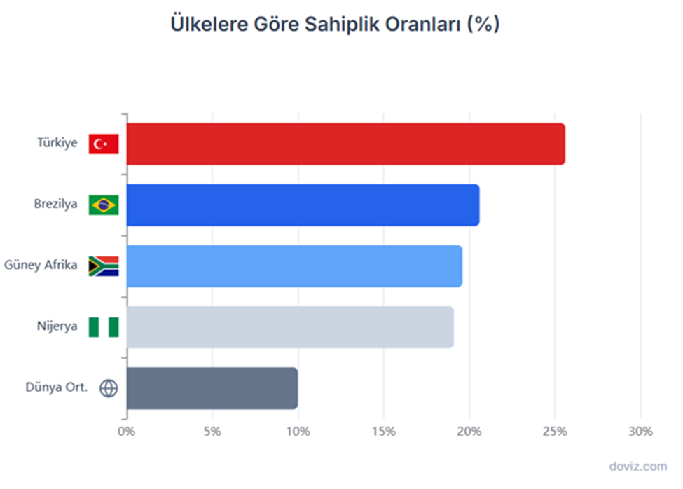 Küresel çapta kripto paralara ilginin sabit kaldığı bir dönemde Türkiye'de kripto sahiplik oranının yüzde 25'in üzerinde olduğu belirlendi. We Are Social ve Meltwater tarafından hazırlanan Temmuz 2025 Dijital Global İstatistik Raporu’na göre dünya genelinde geçen yılın son çeyreğinde yüzde 10 seviyesinde olan 16 yaş üstü internet kullanıcılarının kripto para sahipliği bu yıl da aynı oranı korudu. Türkiye ise yüzde 25,6 oranı ile kripto sahipliğinde listenin zirvesinde yer aldı. Türkiye’yi yüzde 20,6 ile Brezilya, yüzde 19,6 ile Güney Afrika ve yüzde 19,1 ile Nijerya takip etti. Böylece Türkiye, en yakın rakibi Brezilya’ya beş puanlık fark atarak liderliğini sürdürdü. Kripto para sahipliğinde son sıralarda ise Rusya, Çin ve Fas yer aldı. Cinsiyet ve yaş dağılımına göre kripto sahipliği Kripto para sahipliği cinsiyet ve yaş gruplarına göre incelendiğinde ise dikkat çekici veriler ortaya çıktı. Buna göre kripto sahipliğinde tüm yaş gruplarında erkeklerin kadınların önünde yer aldığı görüldü. 25-34 yaş grubundaki erkeklerin yüzde 16,2’si kripto para sahibi olurken, aynı yaş grubundaki kadınların yüzde 8,7’sinin herhangi bir kripto para birimine sahip olduğu ortaya çıktı. 35-44 yaş grubunda erkeklerin yüzde 14,1’inin, kadınların ise yüzde 7,8’inin kripto para sahibi olduğu belirlendi. 65 yaş üstü erkeklerde bu oran yüzde 3,2 iken, kadınlarda yüzde 1,8 olarak ölçüldü. 16-24 yaş grubunda erkeklerin yüzde 13,5’inin, kadınların ise yüzde 6’sının kripto para sahibi olduğu tespit edildi. Güvenlik endişeleri sürüyor Kişisel verilerin çevrim içi ortamda nasıl kullanıldığına dair endişeler de raporda yer aldı. Buna göre 16 yaş ve üzeri internet kullanıcılarının kaygıları geçen yılın dördüncü çeyreğinde yüzde 29,7 seviyesindeyken, bu yıl yüzde 30’a yükseldi. Türkiye, güvenlik endişelerinde ise yüzde 29,9 oranıyla dünya ortalamasına yakın seyretti. Bu alanda en yüksek kaygıyı yaşayan ülkenin yüzde 52,2 ile İspanya olduğu görüldü. Bitcoin 6 haftanın en düşük seviyesinde Kripto varlıkların performansı incelendiğinde ise Bitcoin'in ağustos ortasında kaydettiği rekorun ardından gerilemeye devam ederek altı haftanın en düşük seviyesine indiği görüldü. 14 Ağustos’ta 124 bin 128 dolar ile tüm zamanların zirvesine çıkan Bitcoin, bugün itibarıyla 111 bin dolardan işlem gördü. Kripto para piyasasında yaşanan geri çekilmeyi değerlendiren FP Markets analisti Aaron Hill ise Powell’ın Fed’in ihtiyatlı davranacağı uyarısına dikkat çekerek, “Önümüzdeki süreç sakin bir nehir yolculuğu gibi görünmüyor” ifadesini kullandı. [news_id:780712] [news_id:782307]
